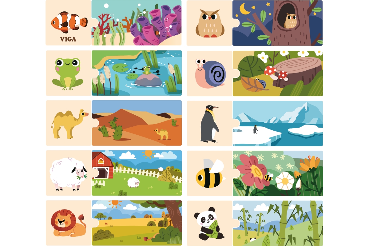 Sada se skládá z 20 prvků, které je třeba nakombinovat tak, aby bylo zvíře přiřazeno ke svému přirozenému prostředí. Prvky jsou velmi dobře sladěné a ..