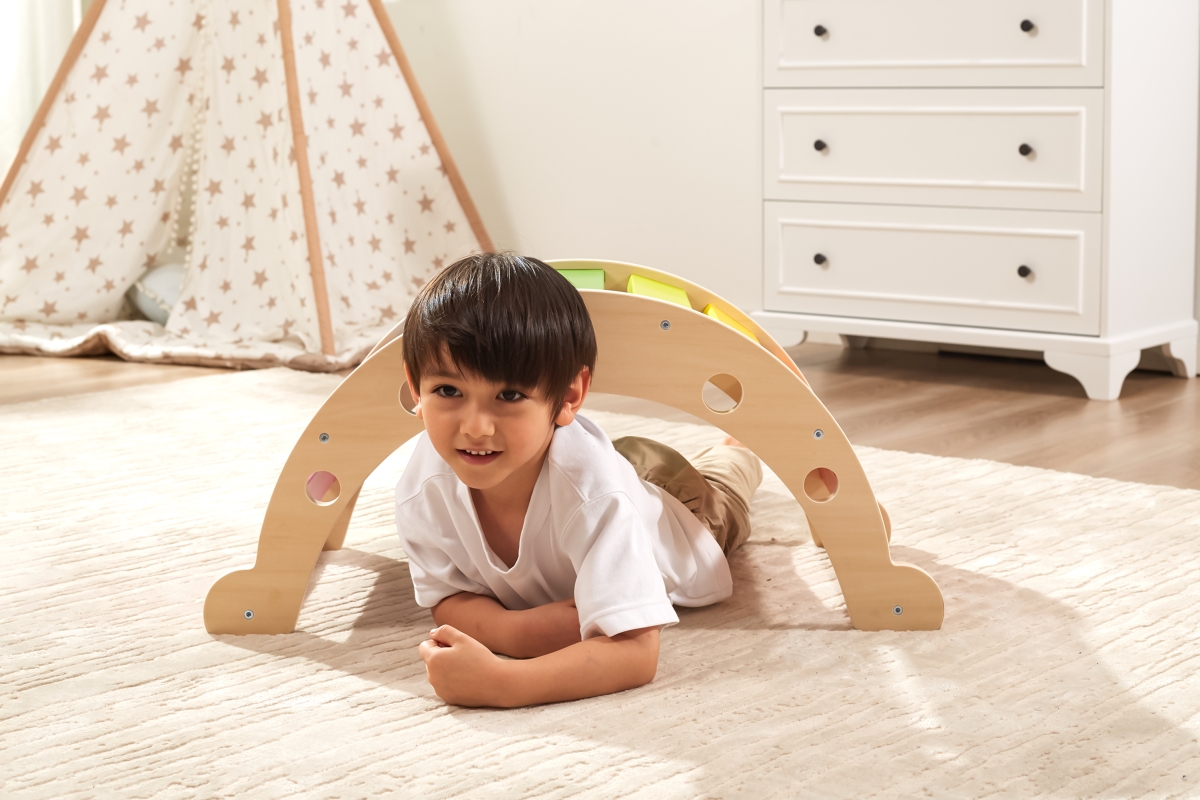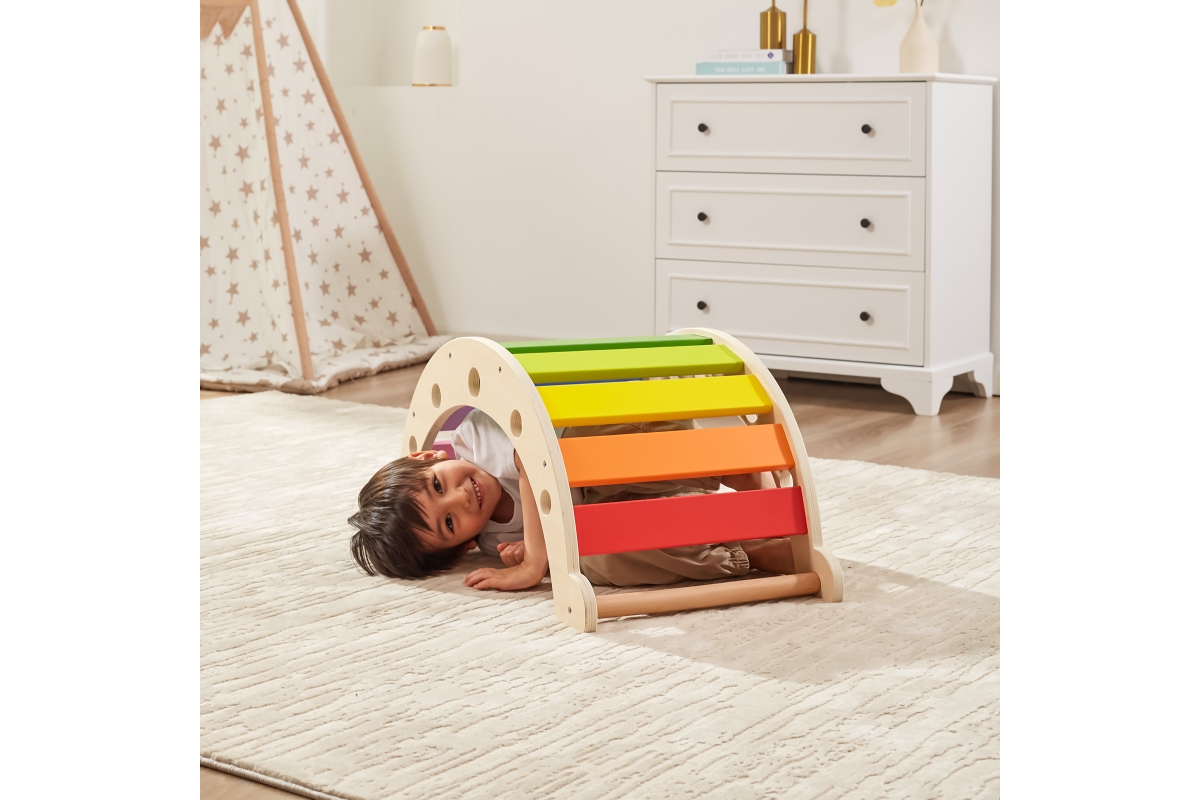 Dřevěný lezecký oblouk pro nejmenší děti. Rozměry 75x39,5x35 cm. Rozměry balení 76x39x8 cm. Maximální nosnost 50kg. Věk 12m+..