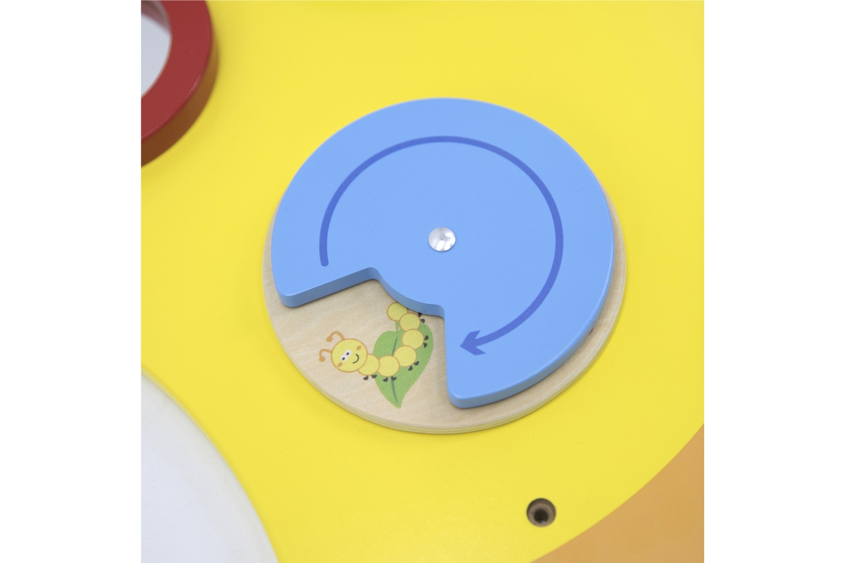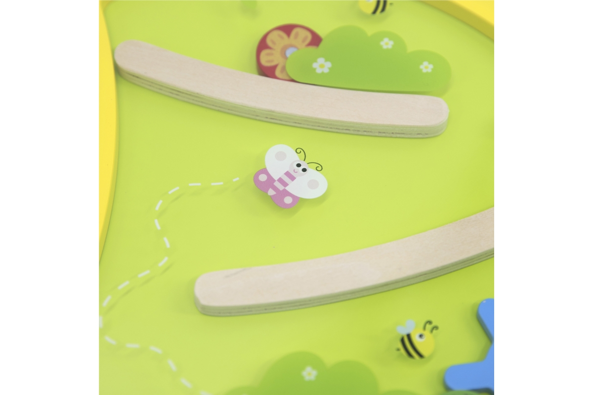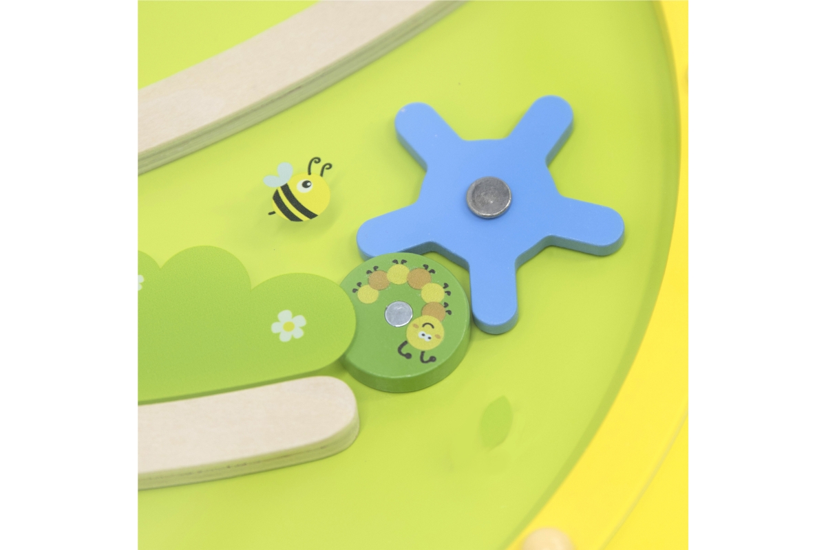 Nástěnná hra Housenka - junior. Nástěnná hra obsahuje herní prvky jako např. magnetické bludiště, labyrint nebo ozubená kolečka. Rozměry hry 155x61x6 ..