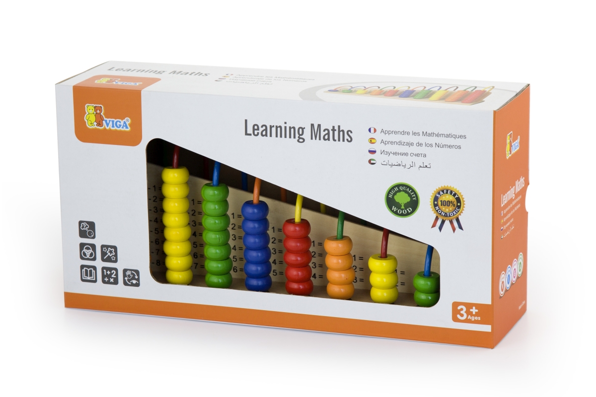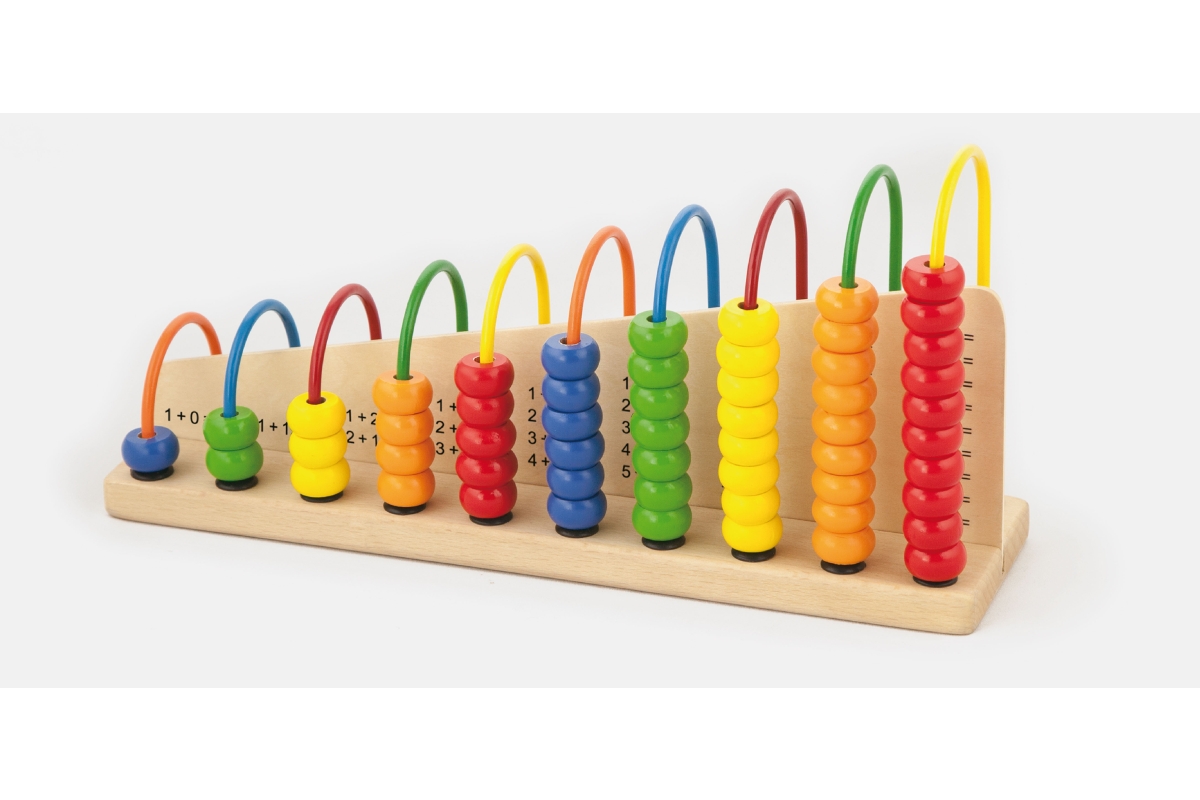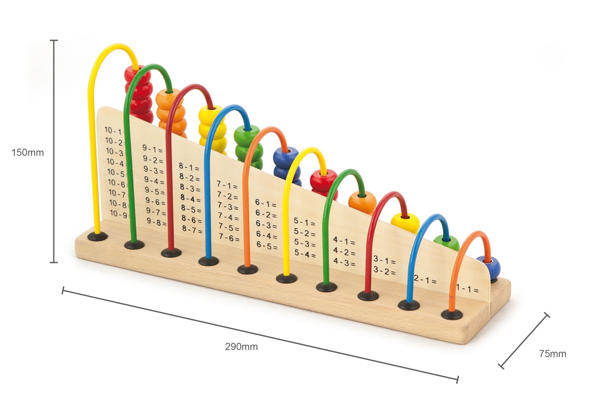 Dřevěné počítání o rozměru cca 29 x 14 x 7 cm,na dřevěné destičce jsou uvedeny příklady a je nutné přiřadit správný počet kuliček. Rozměry balení cca ..