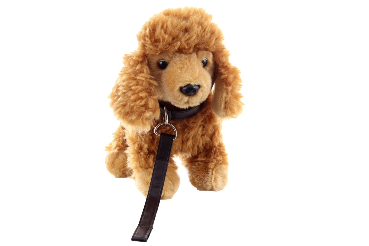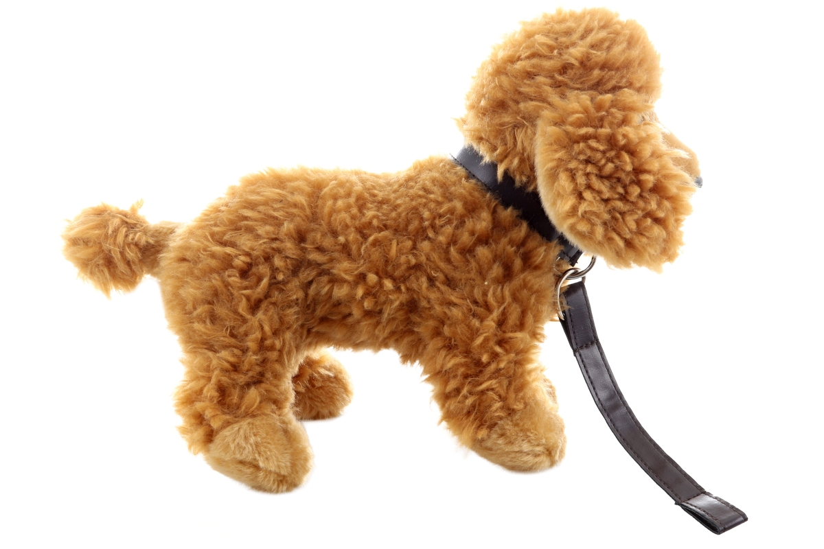 Plyšový pudl s obojkem. Rozměry 26x10x23 cm. Věk 0+..
