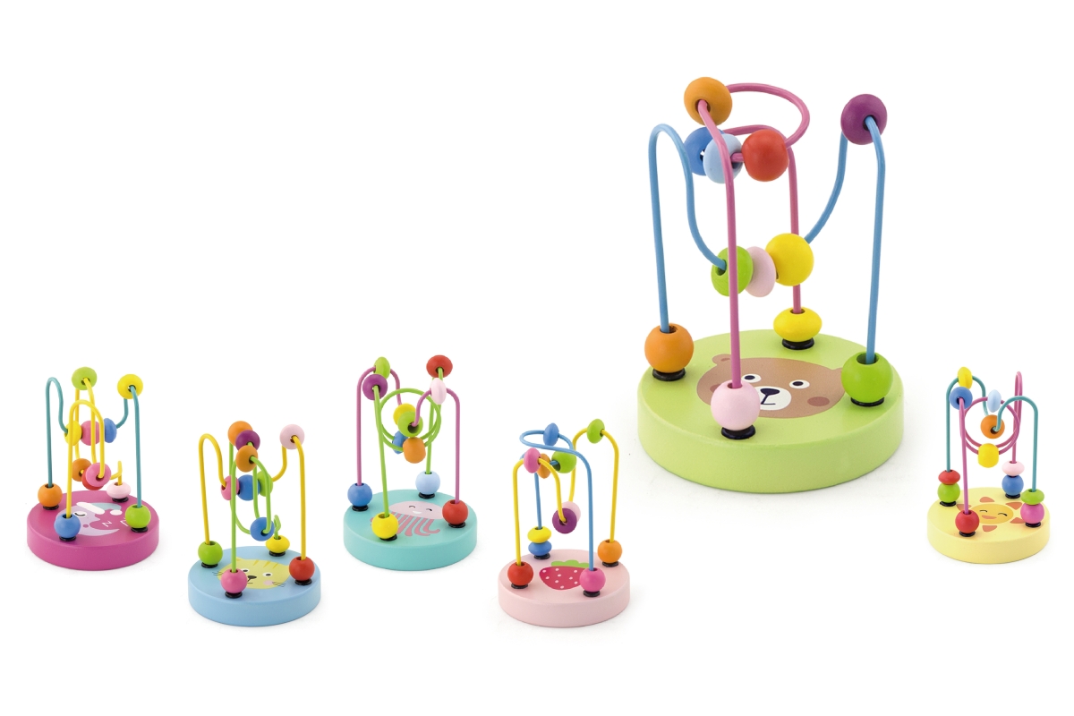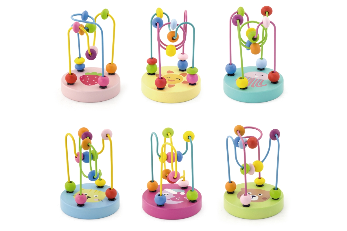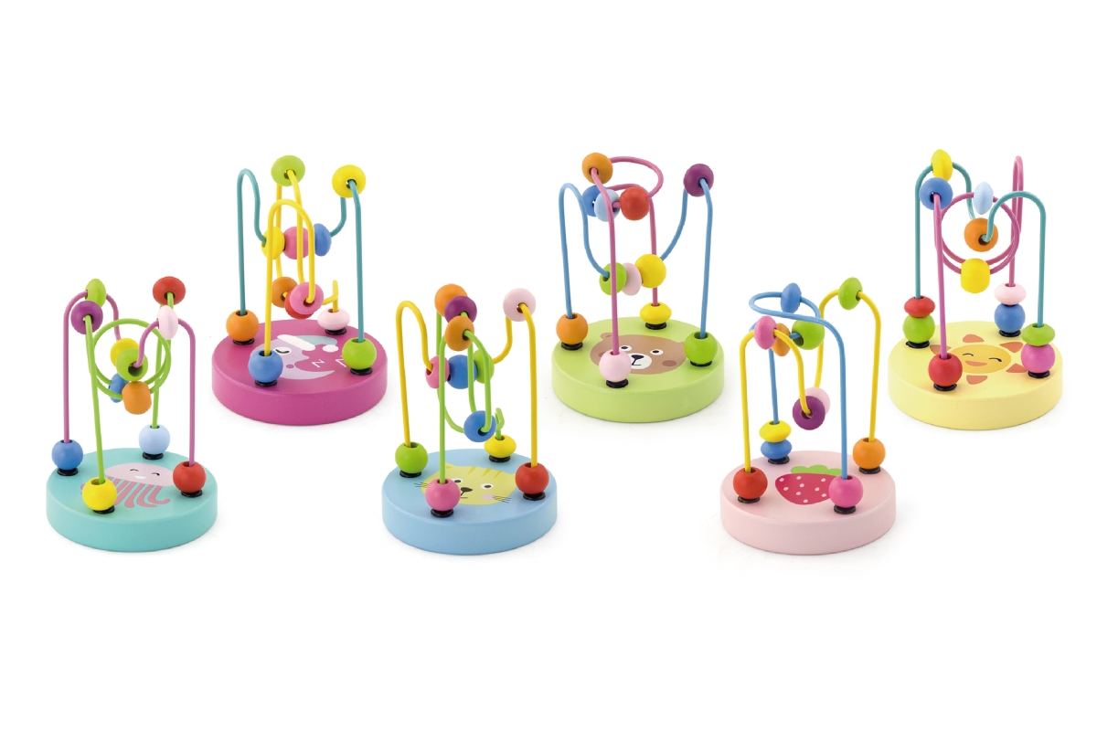 Dřevěný labyrint s motivy zvířátek. Rozměry labyrintu cca 9 x 9 x 12,5 cm. Věk 12m+..