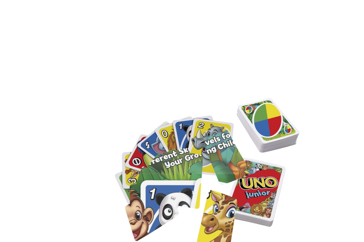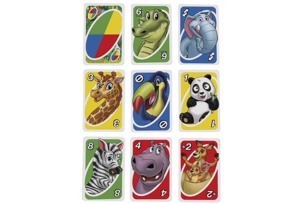 Tato zjednodušená karetní hra UNO® Junior zvířátka pro mladší hráče má několik úrovní hry, takže děti mohou s hrou růst. Na kartách jsou pro každé číslo od 0 do 8 vyobrazena roztomilá zvířátka ze zoo, takže přiřazování je snadné už pro děti od 3 let. Tři úrovně hry umožňují, aby hra držela krok s vývojem dítěte. Hráči závodí, kdo se zbaví všech svých karet tím, že je přiřadí ke kartě zobrazené na vrcholu balíčku, a to buď podle barvy, nebo podle zvířete/čísla. Až vám zůstane jedna karta, nezapomeňte zakřičet UNO!. Barvy a provedení se mohou lišit.Věk 3+