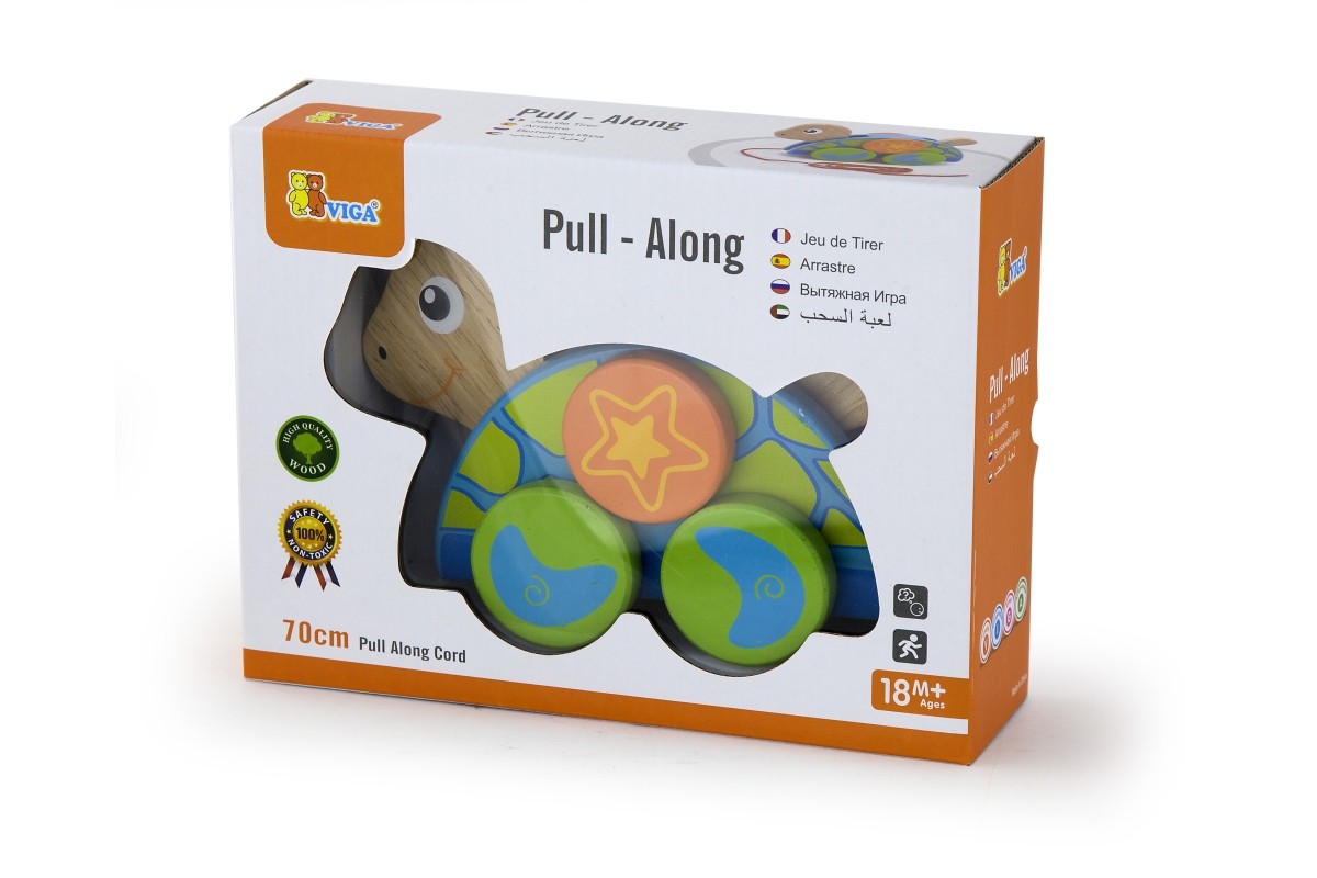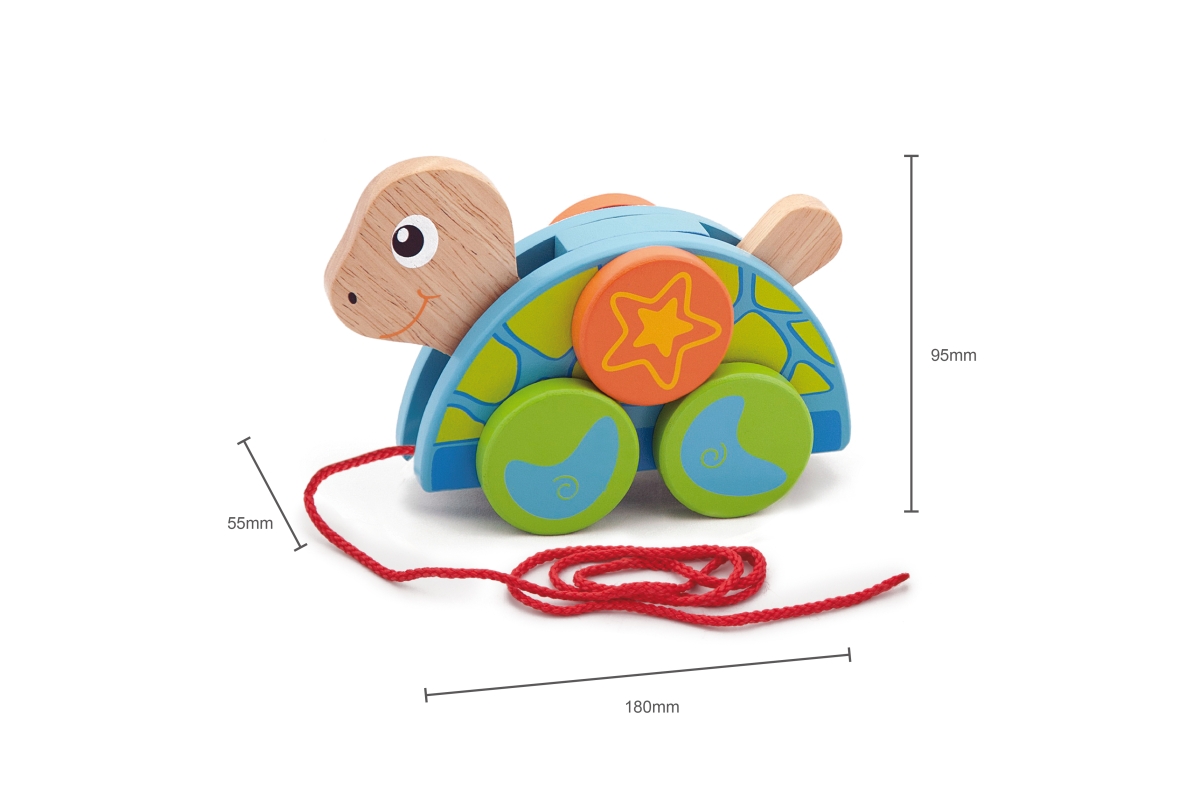 Dřevěná tahačka o rozměru cca 15,5 x 11 x 6 cm. Rozměry balení cca 22,5 x 17 x 6,5 cm. Věk 18m+..