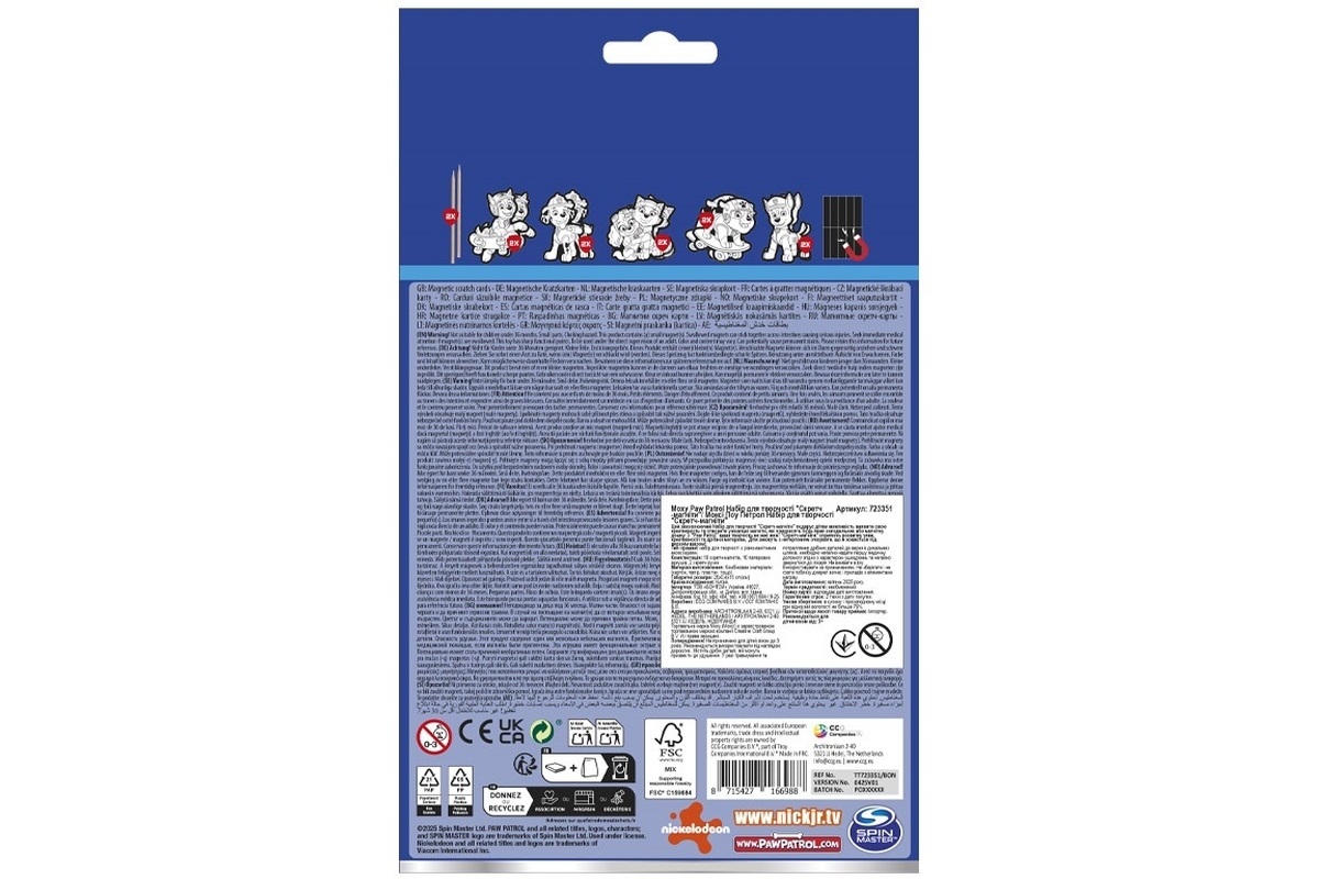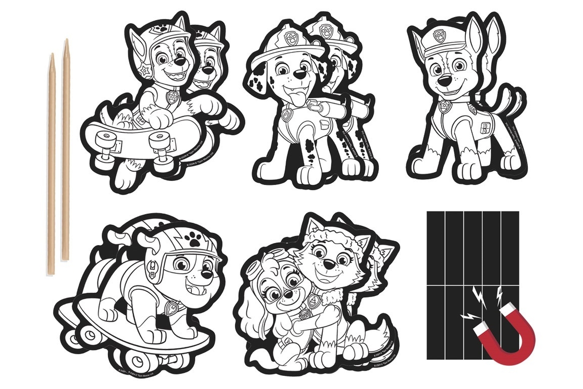Vyškrabovací obrázky s motivem postaviček z pohádky Tlapková patrola. V balení 10 obrázků, 2 dřevěná pera a arch s magnety. Rozměry balení 15x25 cm. V..