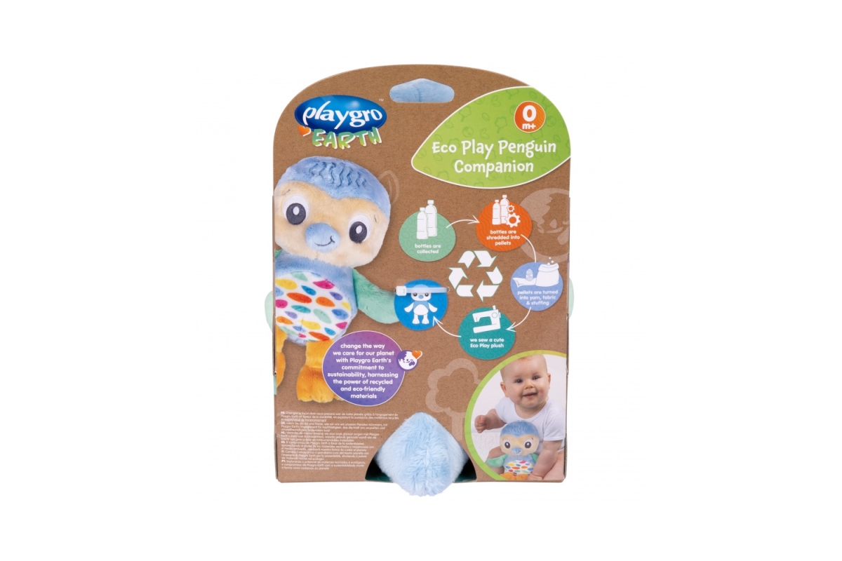 Playgro - Kamarád Tučňáček Eco Play je ekologická hračka ideální pro děti od 3 měsíců. Je vyroben z recyklovaných plastových lahví, takže chráníte pla..