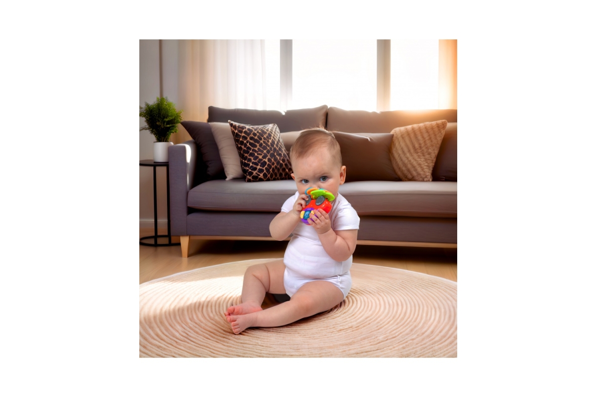 Playgro – Interaktivní klíče se zvuky jsou zábavná a smyslově stimulující hračka pro miminka. Přehrávají pět melodií a třináct zvuků, které zabaví dítě na dlouhou dobu. Každé stisknutí tlačítka spouští zvukový a světelný efekt. Světelná tlačítka jsou snadno ovladatelná a přitahují zrak. Tři měkká kousátka s různými texturami ulevují při prořezávání zoubků. Živé barvy a hravý design stimulují zrak a sluch. Klíče mají ideální velikost pro malé ruce a podporují jemnou motoriku. Interaktivní klíče od Playgro přinášejí radost, úlevu a rozvoj v jednom.