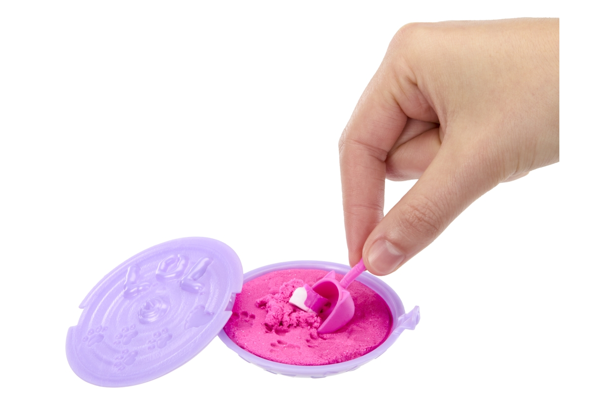 Vstupte do světa překvapení, kde budete muset hrabat v písku, lámat kódy, řešit nápovědy a odemykat tajemství jedno po druhém, abyste rozbalili roztomilé módní doplňky a další věci. Hrabejte se v písku a najděte stopy a překvapení. Každá stopa vás přivede blíže ke klíči a odhalí to největší překvapení: krásnou panenku. Hledejte ultra vzácnou zlatou kouli, která skrývá postavu Spy Chase. Ultra-vzácná naháněčka (Špionážní štěně) se dodává ve zlaté kouli a má speciální funkce pro změnu barvy. Začíná být úplně čirá a poté, když ji ponoříte do studené vody, získá všechny své barevné akcenty. Panenka Spy Puppy překvapí extravagantní změnou barvy. Má také funkci „změny barvy s pamětí“, takže si zvířátko zachová své vzory se změnou barvy ve studené vodě, dokud se neponoří zpět do teplé vody. Věk 3+