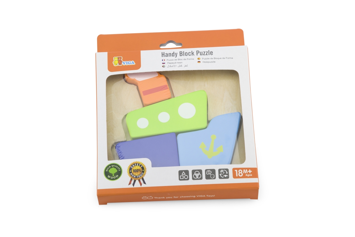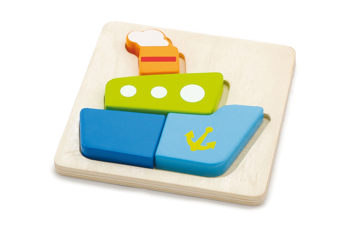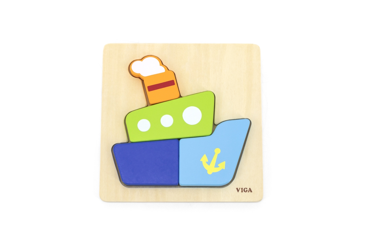 Dřevěné puzzle - vkládačka pro nejmenší s motivem lodě. Rozměry lodě cca 12,5 x 13 cm. Rozměry balení cca 15,5 x 18 x 2 cm. Věk 18m+..