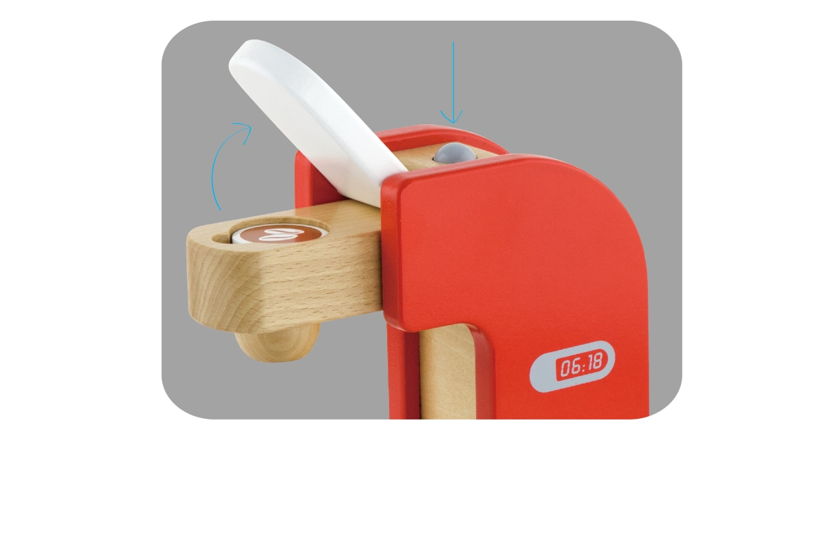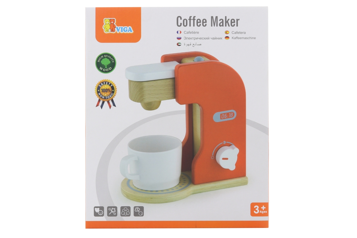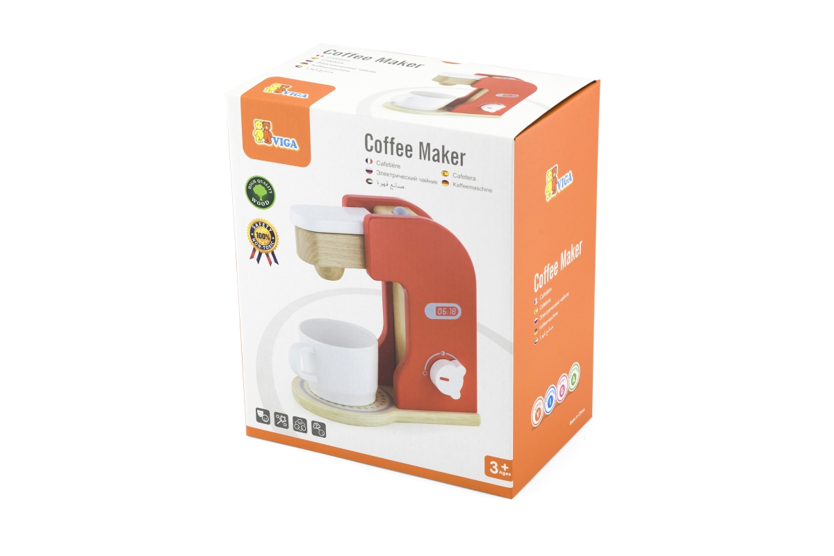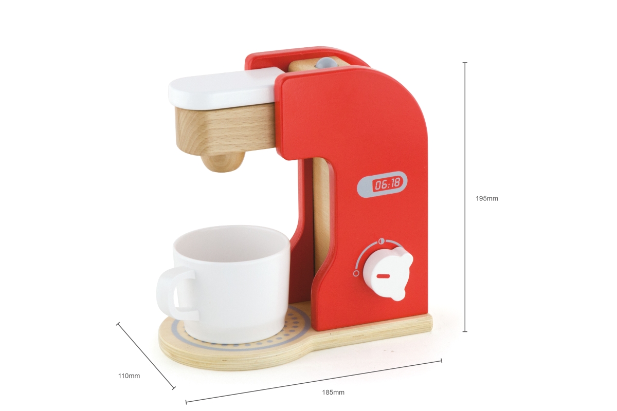 Dřevěný kávovar o velikosti cca 21 x 19,5 x 11 cm. Rozměry balení cca 19,5 x 23,5 x 12,5 cm. Věk 3+..