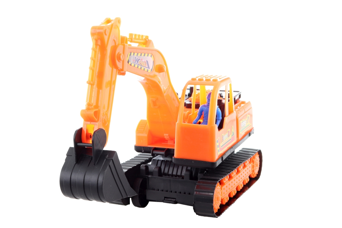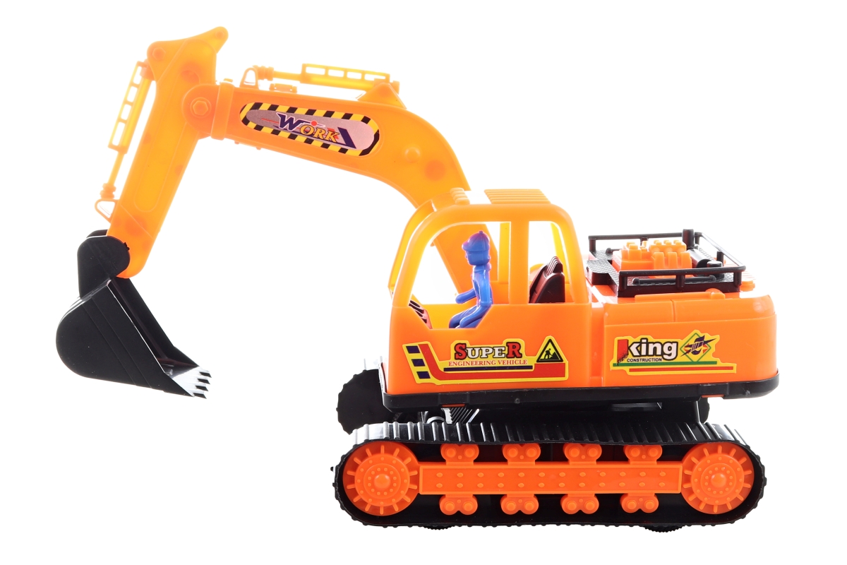 Pásový bagr z plastu. Pásy nejsou funkční, auto se pohybuje pomocí koleček na volný chod. Baleno v sáčku. Rozměry balení cca 28x22x11 cm. Rozměry bagr..