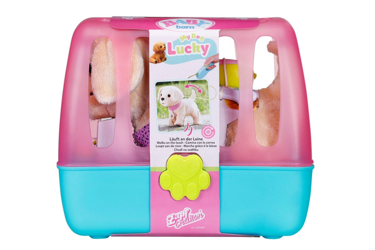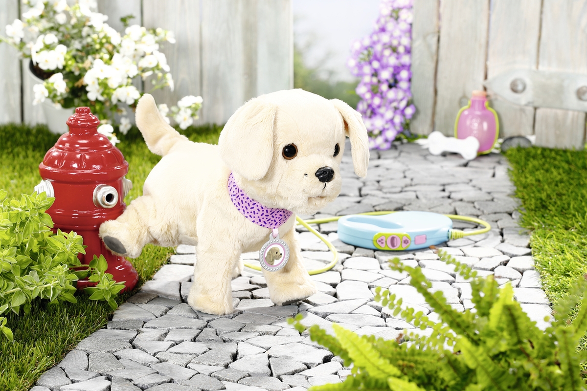 Kamarád BABY born, veselý pejsek, chodí na vodítku a vesele štěká. Když ho pohladíte po zádech, vrtí ocáskem a uslyšíte roztomilé psí zvuky. Umí pít vodu ze své mističky. Skloní hlavu, vyplázne jazyk a je slyšet, jak srká. Poté, co se napije, zvedne nohu a vyčůrá se. Skoro jako opravdový pejsek! Samozřejmě potřebuje i svou kostičku: pokud ji pejskovi přidržíte před čumáčkem, uslyšíte zvuky chroupání. Jeho box využijete nejen při cestování, ale také jako místo, kde může pejsek odpočívat. Pejsek je oblíbeným zvířecím kamarádem BABY born Emmy, se kterou hrají v animovaném seriálu BABY born. Nezapomeň se podívat! Věk 3+