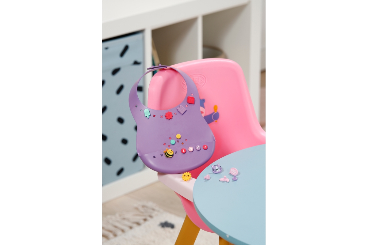 Kreativní bryndák: lze upravit pomocí různých nacvakávacích ozdob. Vhodné pro panenky o velikosti 43 cm a medvídka BABY Born. Věk 3+..