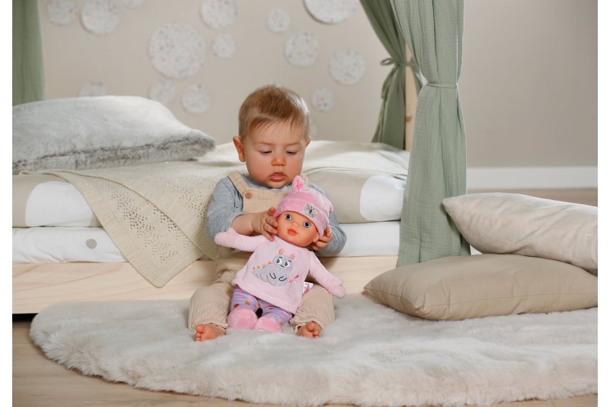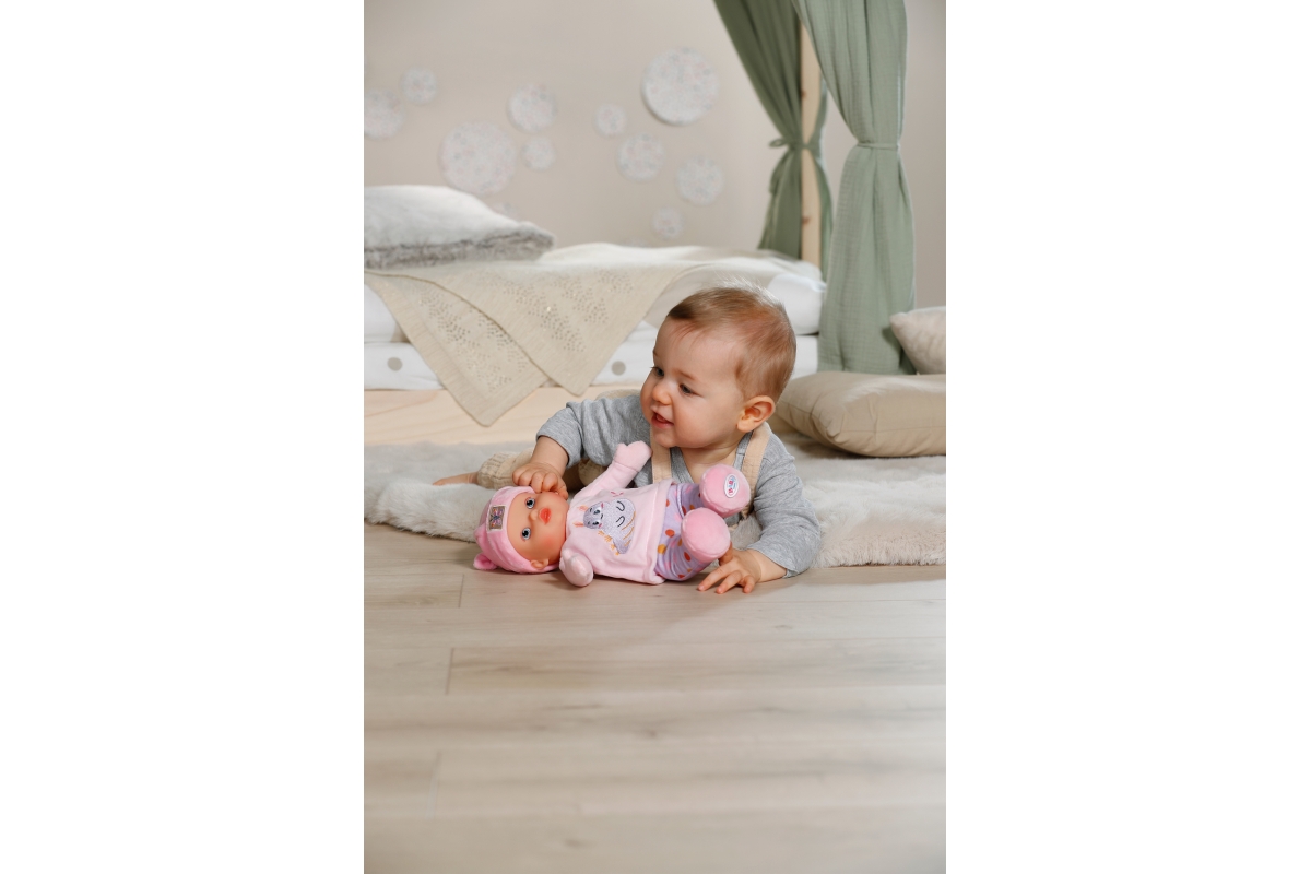 Měkoučká látková panenka s jemným chrastítkem a výšivkou je ideální první kamarádkou pro miminka – připravená k mazlení, chování i hraní. BABY born Sweetie v růžové barvě je lehká, bezpečná a krásně padne do malých ručiček. Má měkké tělíčko, šustivé ouško a jemný zvukový prvek uvnitř – ideální pro první smyslové podněty a hraní od narození.
