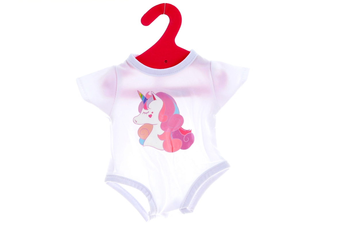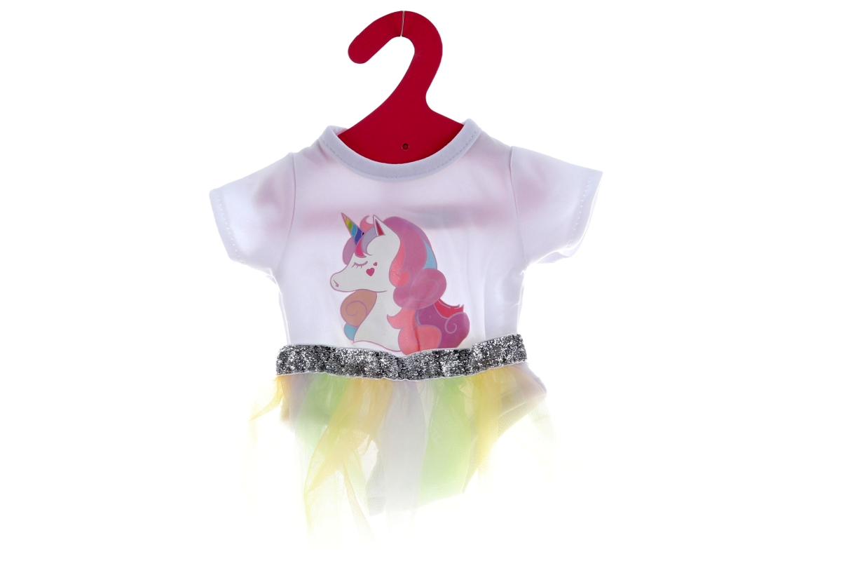 Oblečení pro panenku - sada obsahuje bodáčko a obrázkem jednorožce, tutu sukýnku v duhových barvách a čelenku a jednorožčím rohem.. Rozměry bodýčka - ..