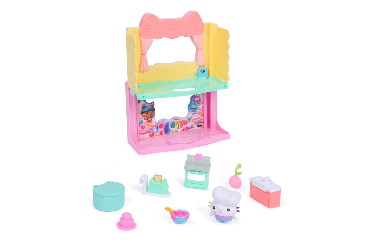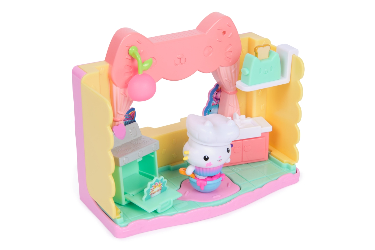 Speciální hrací sadu pokojíčků lze umístit do velkého domu Gabby`s Dollhouse a učinit jej tak útulnějším, nebo si s ním lze hrát samostatně. Hrací sada má dokonce vysouvací dno. Po jeho vysunutí se tak promění ve dvoupatrový hrací set. Obsahuje figurku. Položka obsahuje provedení Kuchyň. Věk 3+