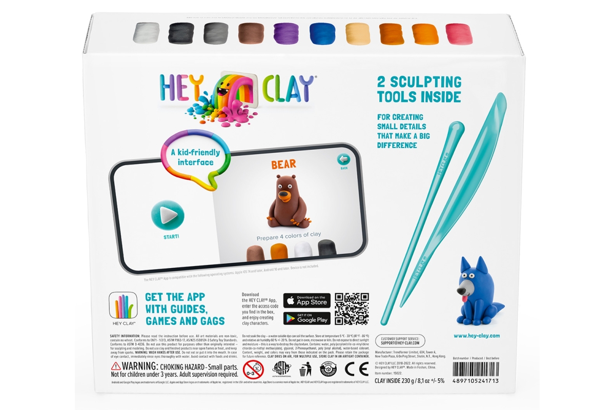 Z modelovací hmoty HEY CLAY si děti mohou vytvořit nepřeberné množství různých postaviček, zvířátek nebo oblíbených hrdinů. Po vymodelování je důležité nechat modely na vzduchu dostatečně zatvrdnout a tím okamžikem se mohou stát součástí dalších her a zábavy. Lze si tak jednoduše vytvořit vlastní figurky a postavičky, nebo schovat Hay Clay opět do kelímku pro další tvorbu. S mobilní aplikací Hey Clay (iOS, Android), kterou si zdarma stáhnete, a která nabídne dětem další možnosti rozvíjení fantazie, barev a kouzlení s vytvářením nových postaviček – kód v hodnotě 4,99USD pro otevření aplikace, najdete v každém balení Sada Hey Clay obsahuje 18 nádobek s měkkou, jemnou a voňavou modelínou a přístupový kód do aplikace pro zakoupenou řadu. Barvy nacházející se v balení Vám umožní vytvořit 6 postaviček. Věk 3+