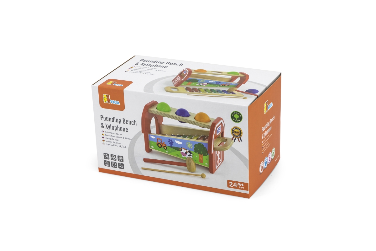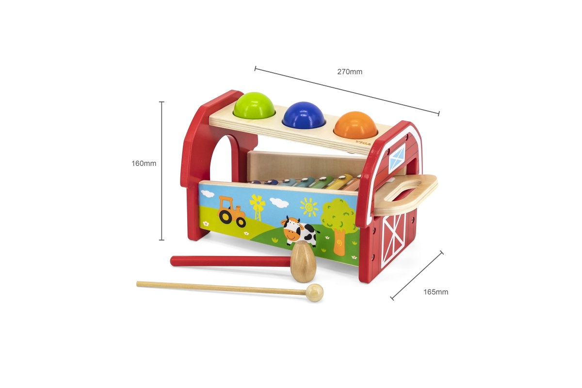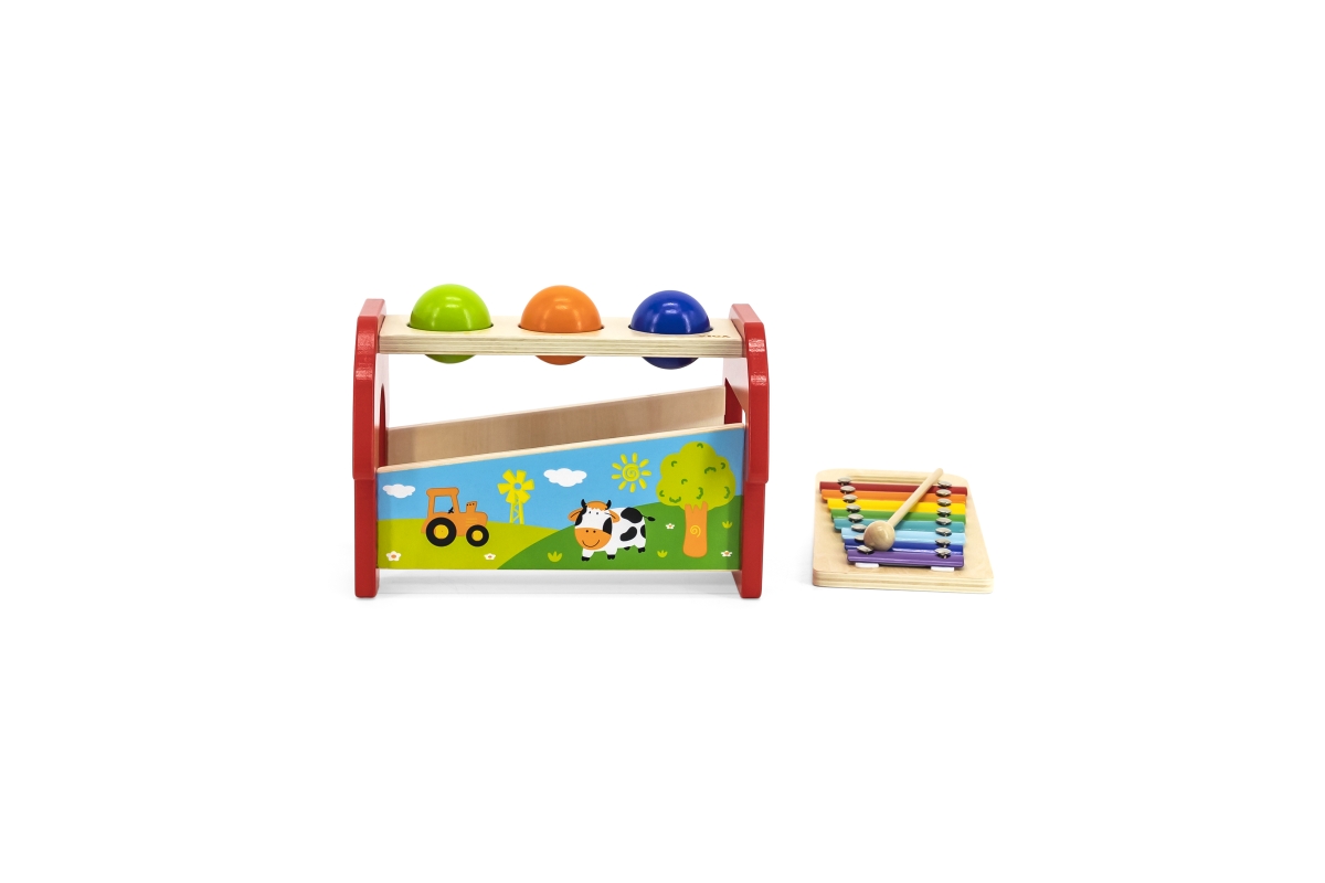 Dřevěná zatloukačka a xylofon. Rozměry cca 16 x 27,2 x 16 cm. Rozměry balení cca 29 x 17 x 17 cm. Věk 24m+..