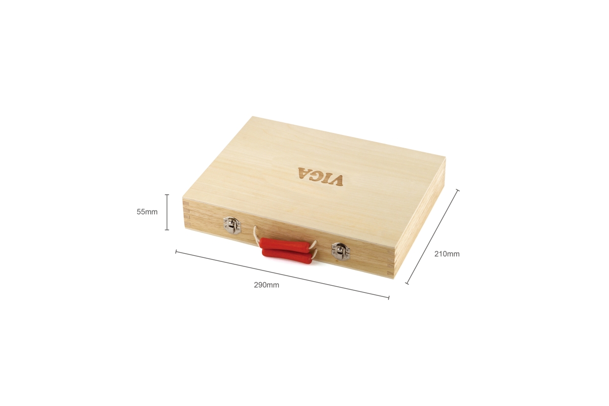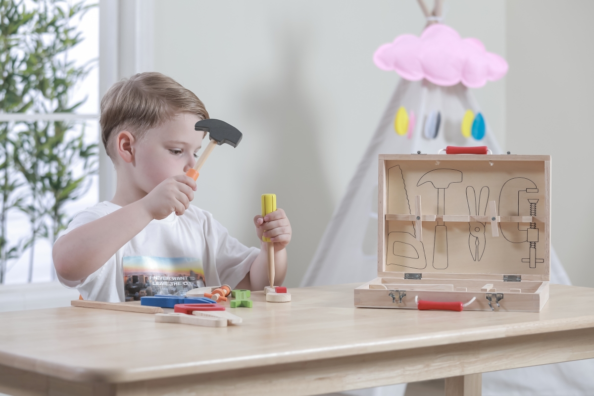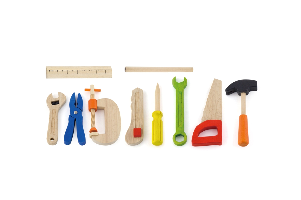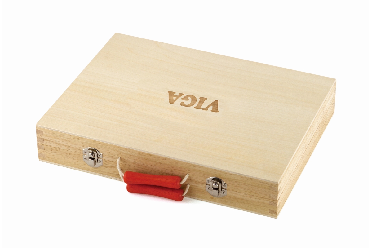 Dřevěné nářadí baleno v praktickém dřevěném kufříku. Balení obsahuje celkem 10 druhů nářadí (kladivo, pilka, klíč, šroubovák a další). Rozměry balení ..