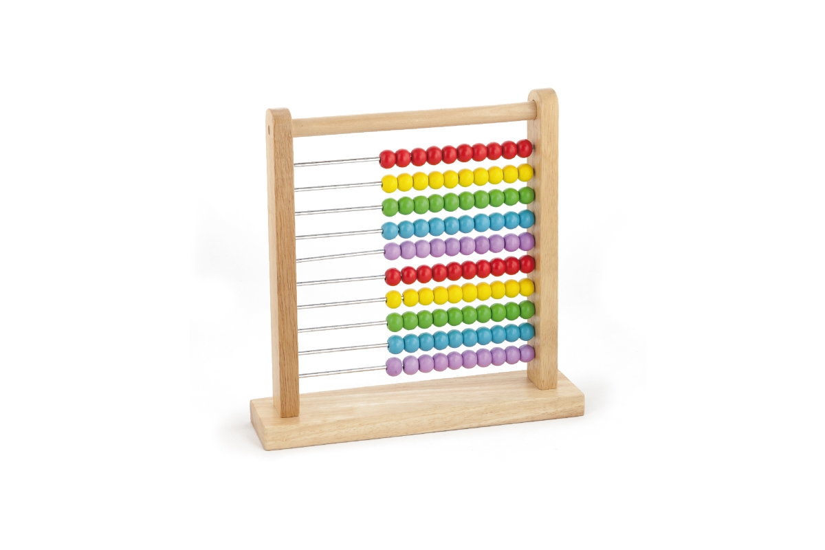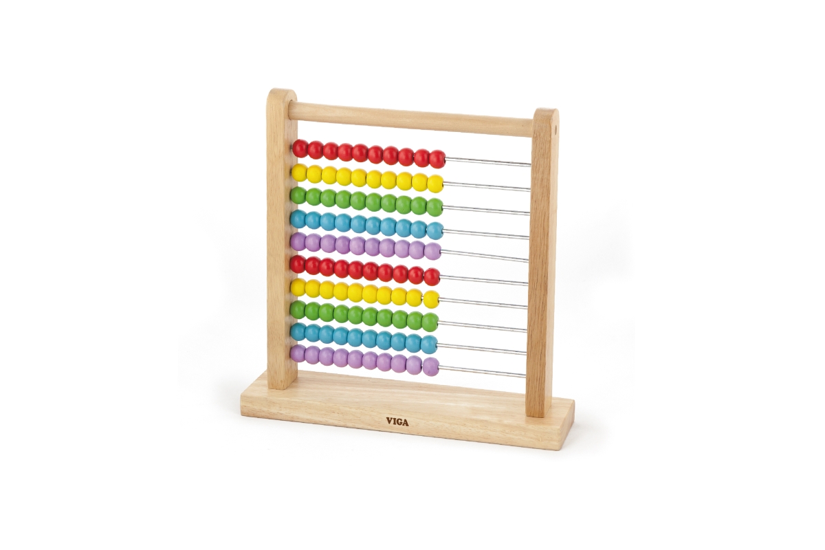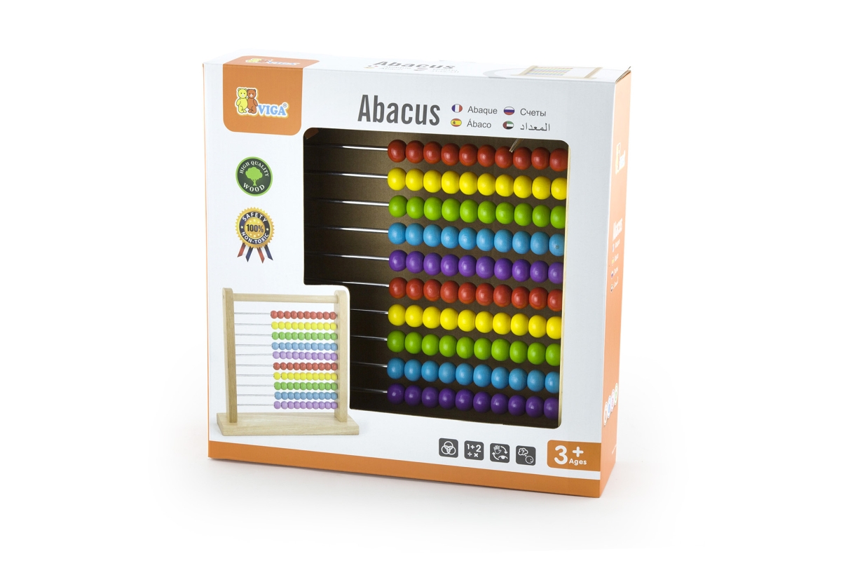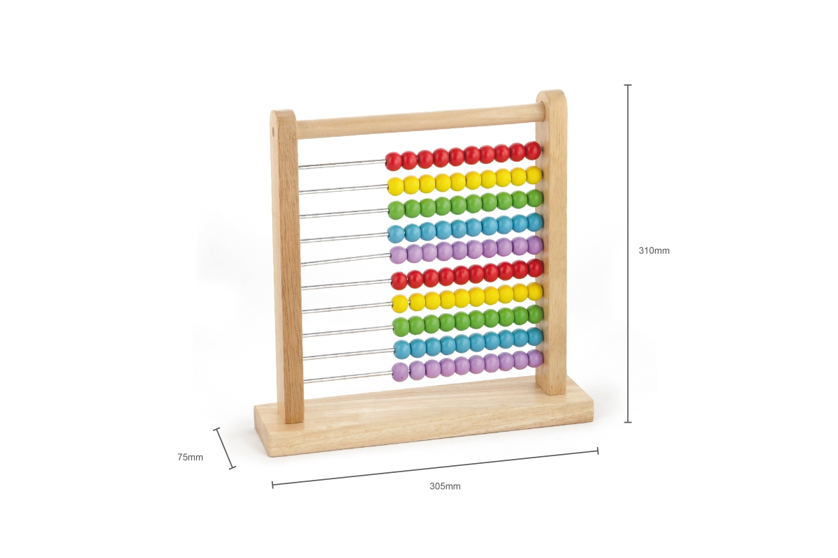 Dřevěné počítadlo o velikosti cca 30,5 x 31 x 7,5 cm. Rozměr balení cca 31,5 x 31,5 x 8,5 cm. Věk 3+..