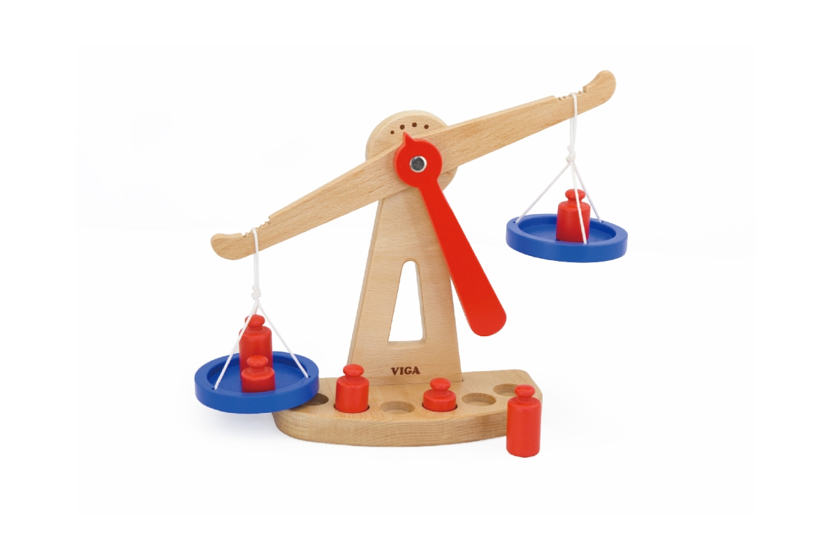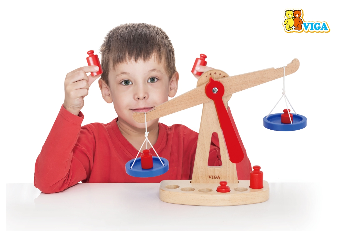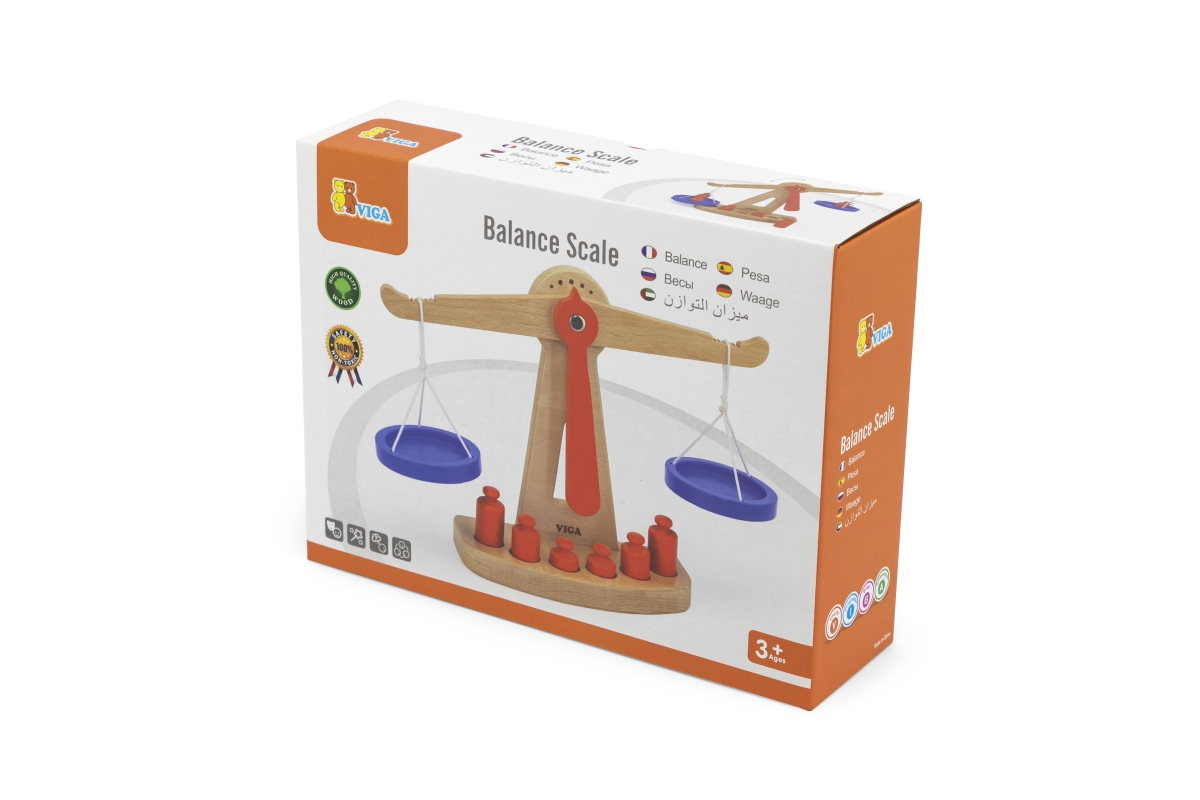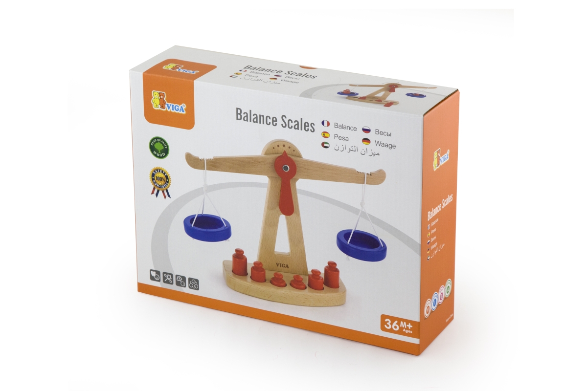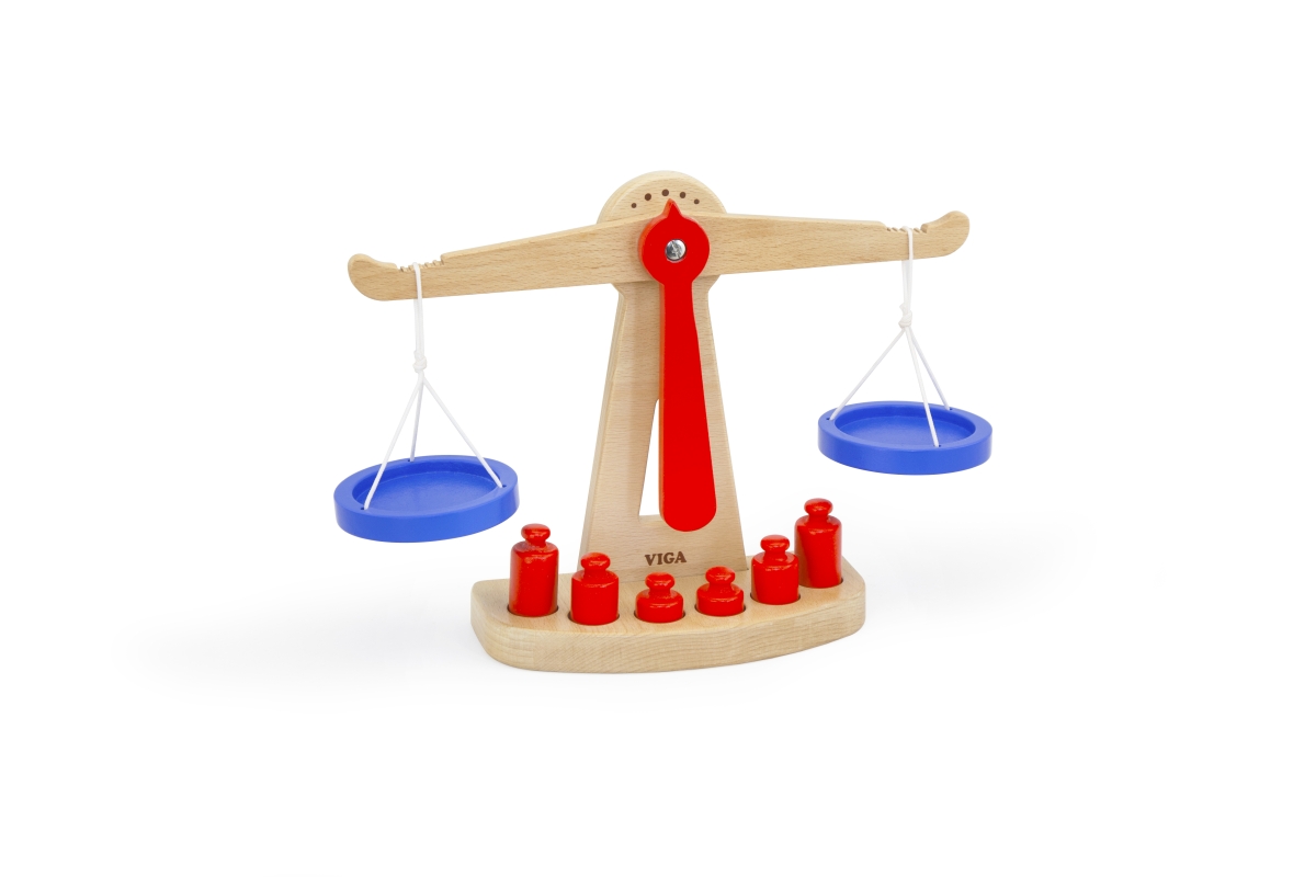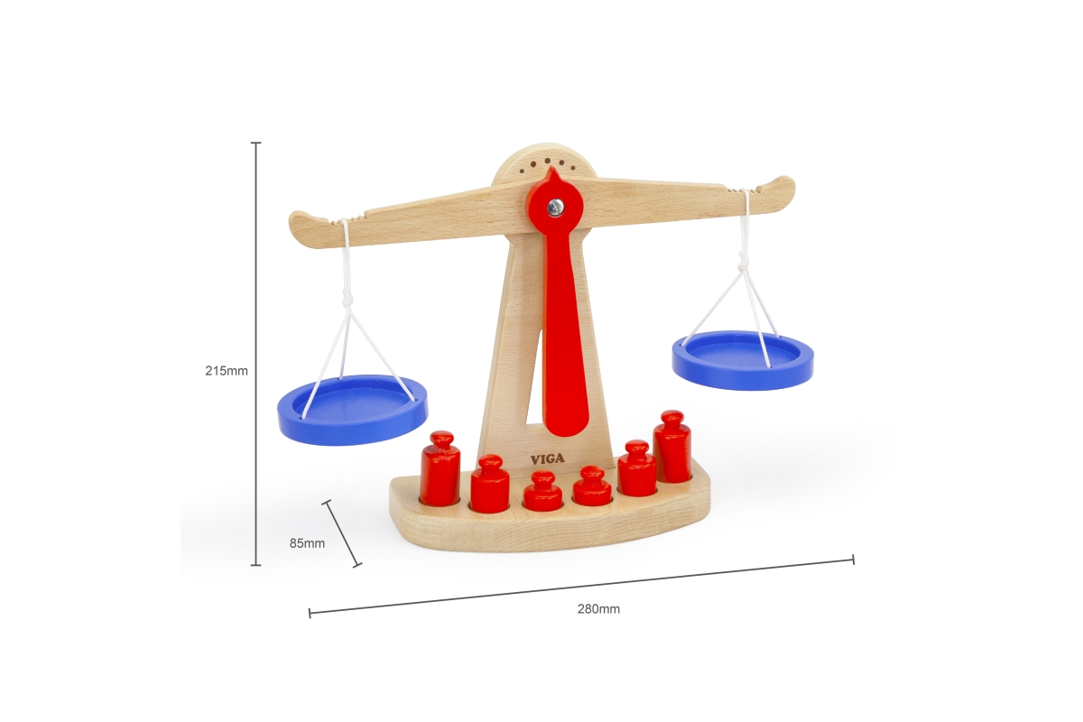 Dřevěná váha o velikosti cca 28 x 21 x 8 cm. Balení obsahuje 6 závaží. Rozměry balení cca 28,5 x 22 x 8 cm. Věk 3+..