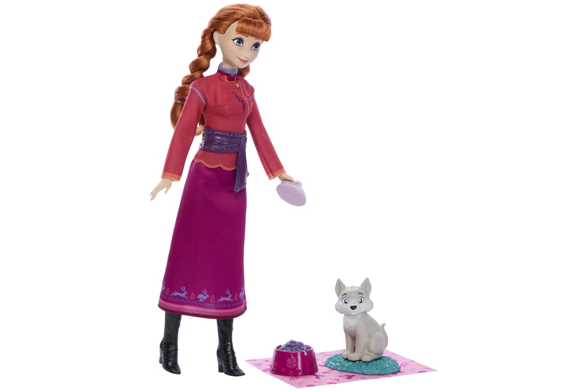 Děti se mohou přidat k Anně a postarat se o jejího roztomilého zvířecího kamaráda! Tento set z Ledového království obsahuje malou figurku vlčete a pět doplňků, které podporují hru na péči – včetně mističky, která se otočením promění na jídlo nebo vodu. Anna má na sobě látkové šaty s páskem a stylové boty. Panenka neumí samostatně stát. Barvy a vzhled výrobku se mohou lišit. Věk 3+