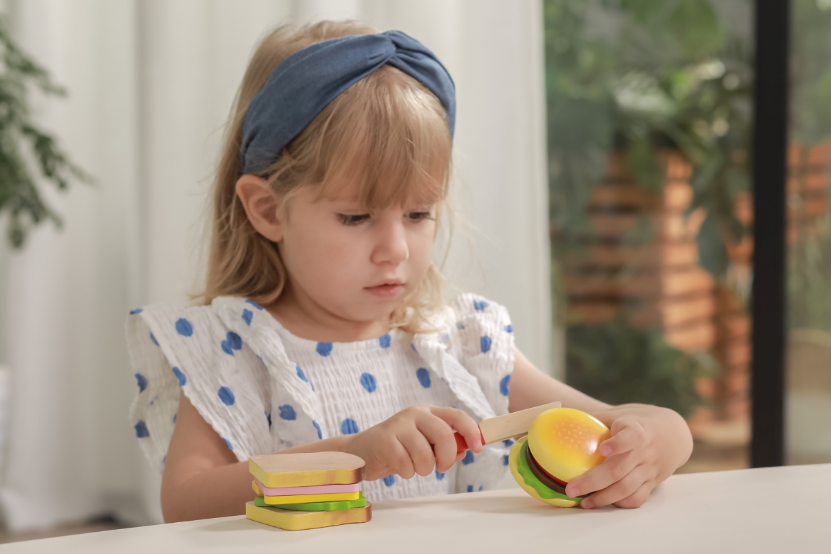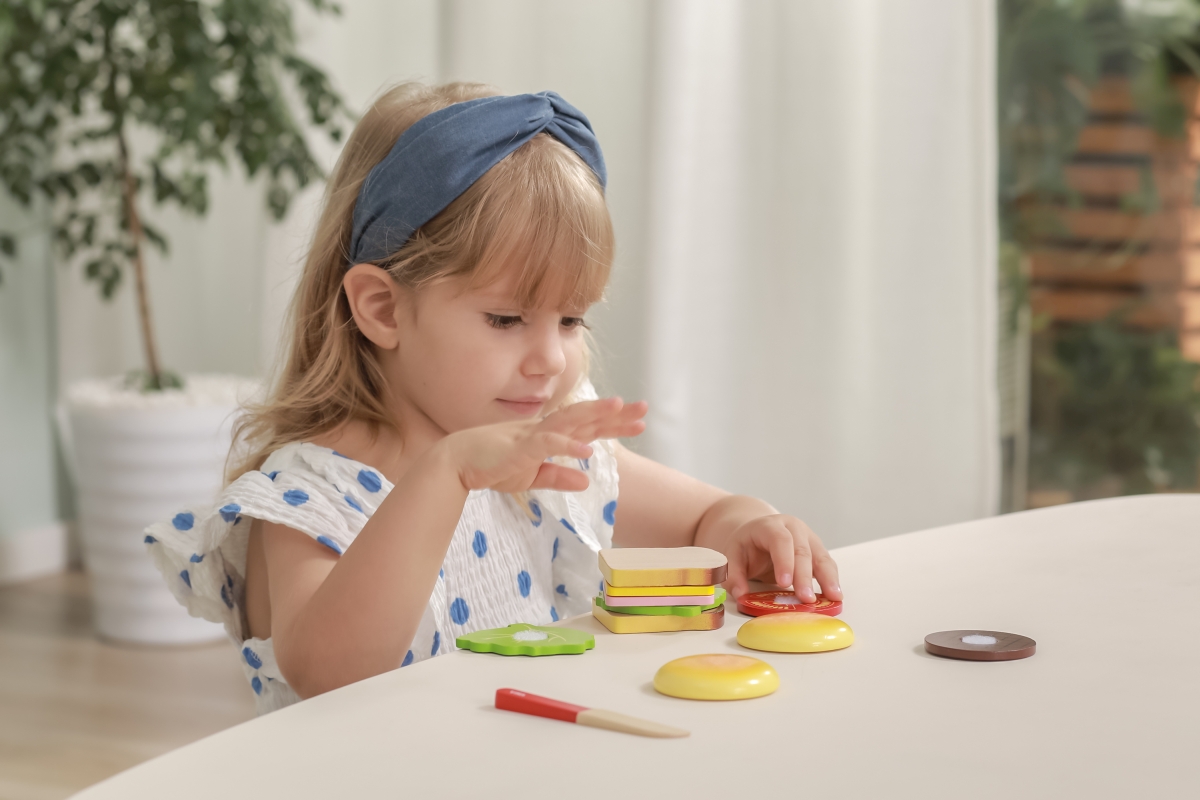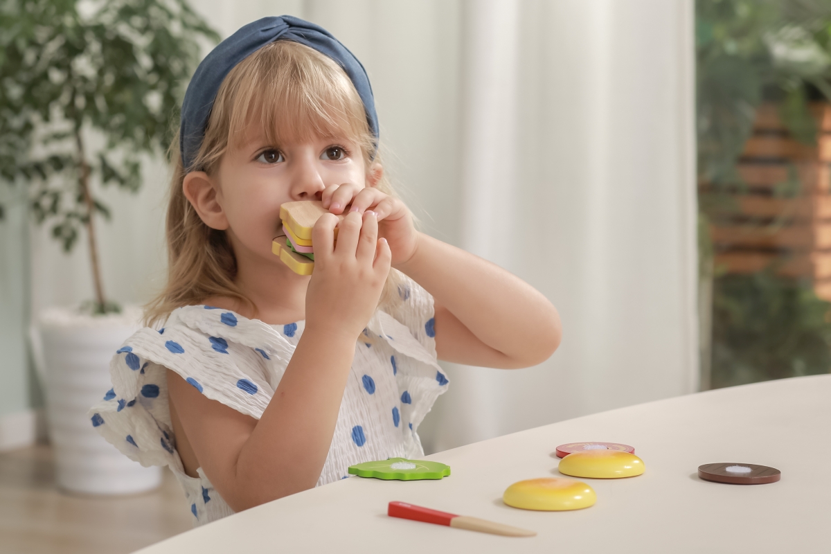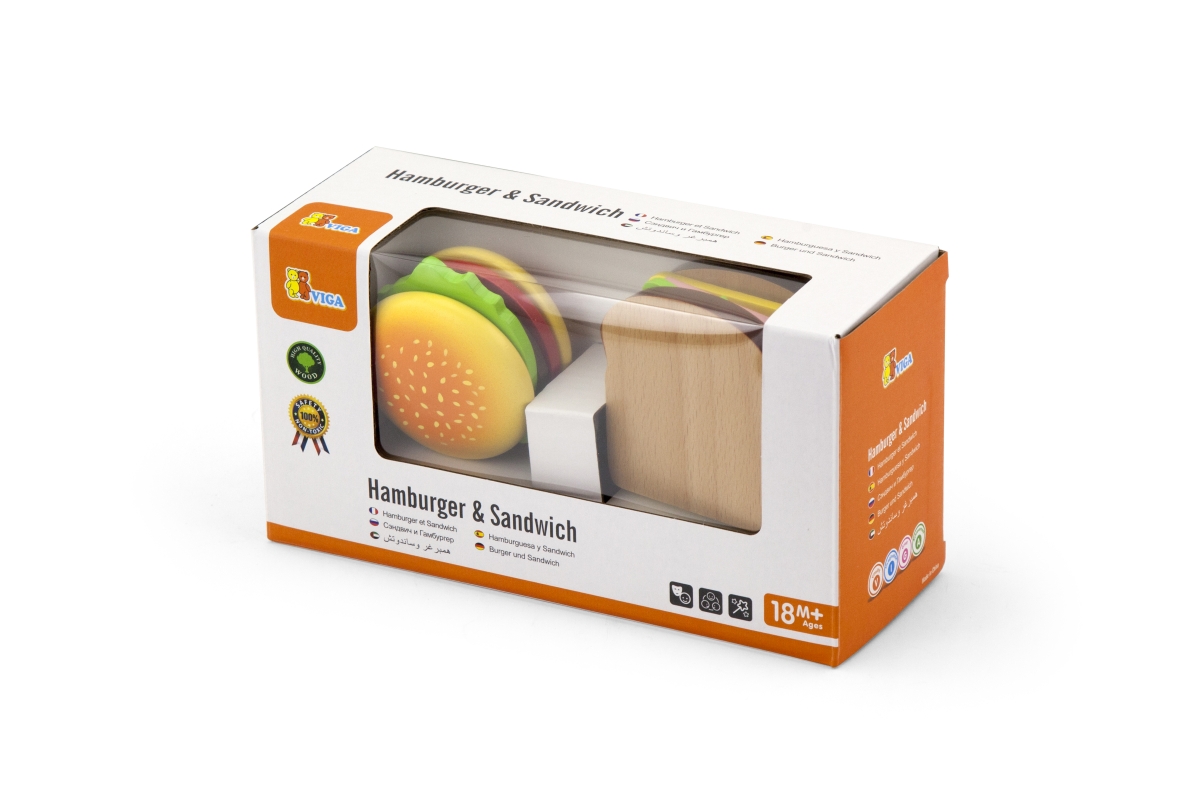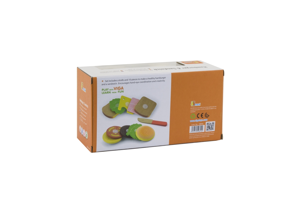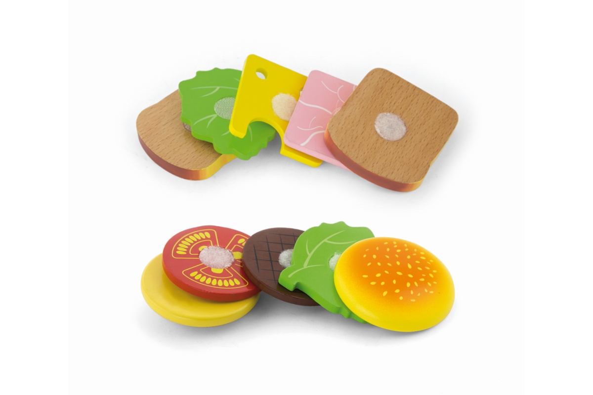 Dřevěný hamburger a sendvič lze rozebírat a dávat zase dohromady, každý plátek je opatřen suchým zipem. Zábava ze skládání tak nikdy nekončí. Rozměry ..