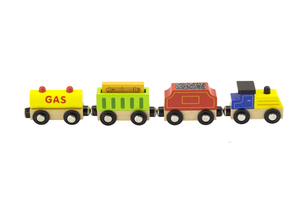 Dřevěná mašinka se 3 vagóny a dřevem.Rozměr mašinky a vláčků cca 7 x 4,5 x2,5 cm, napojení k sobě magnety. Rozměry balení cca 34 x 8 x 3,5 cm. Věk 3+..