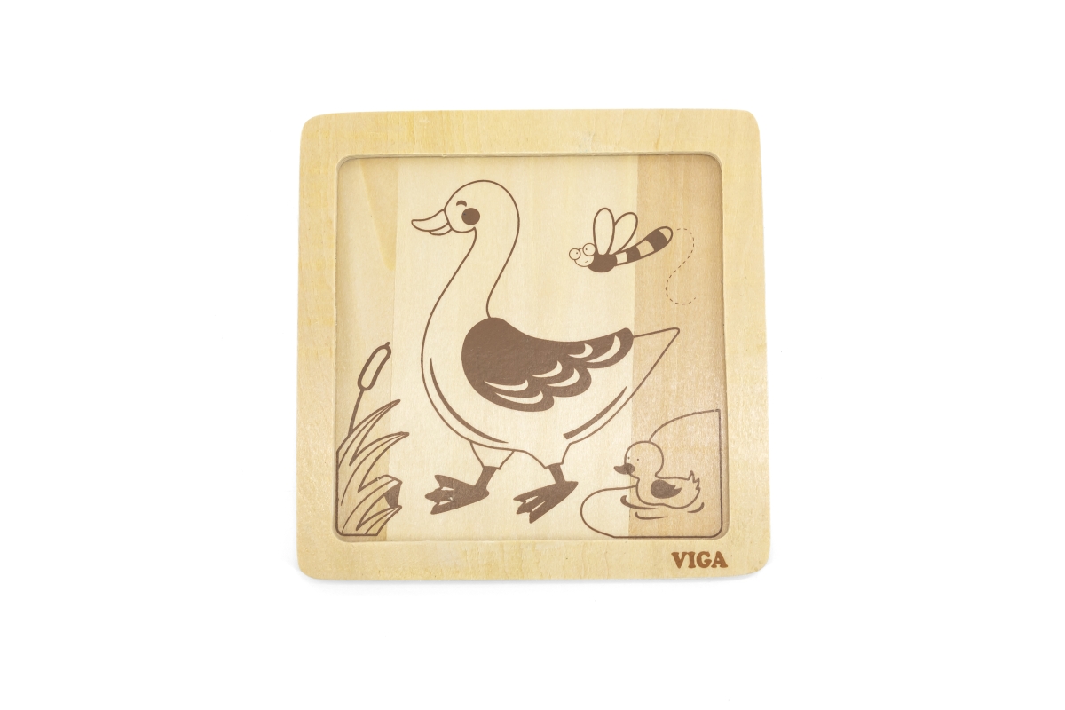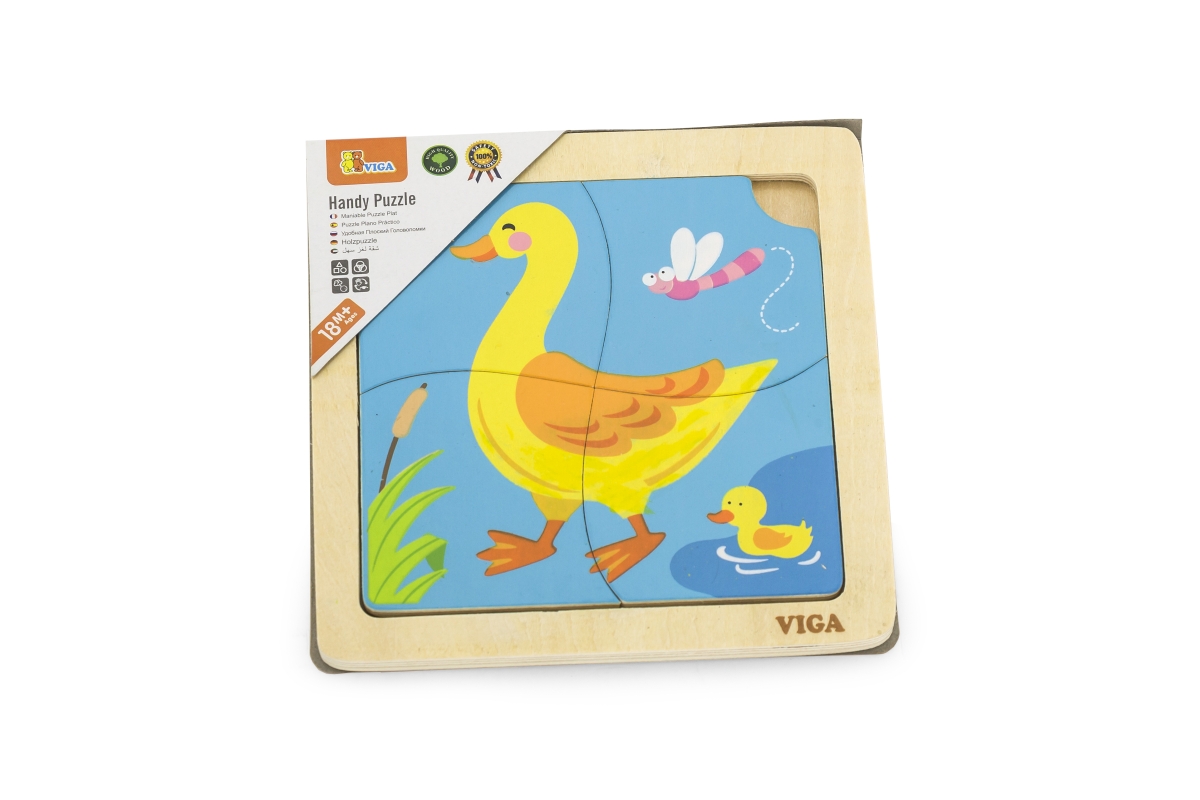 Dřevěné puzzle kachna, obrázek o rozměru cca 12 x 12 cm. Rozměry balení cca 15 x 15 x 1 cm. Věk 18m+..
