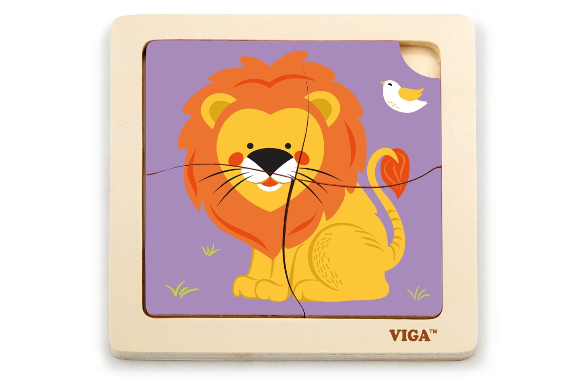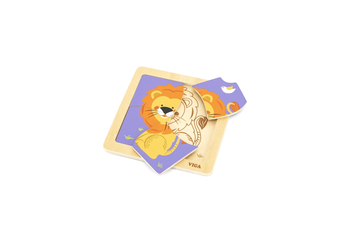Dřevěné puzzle 4 dílky - lev
