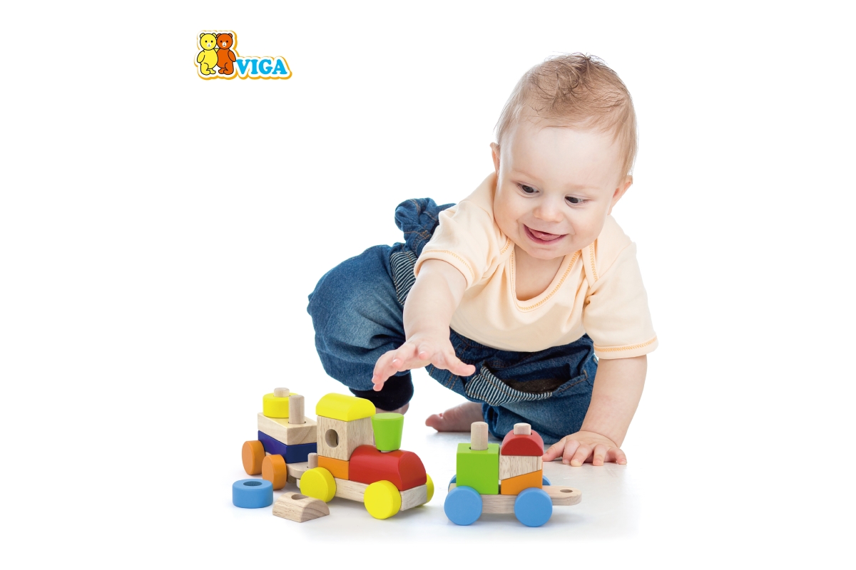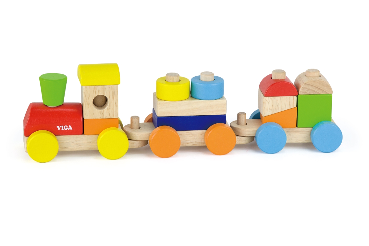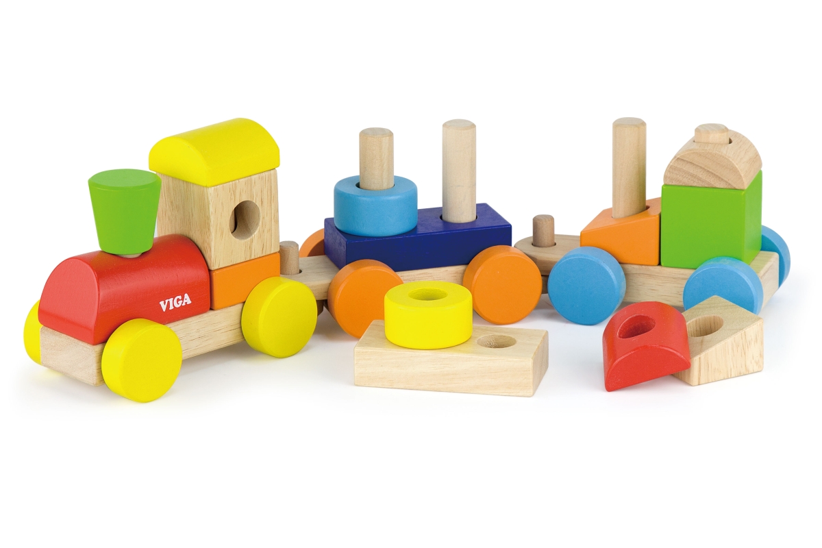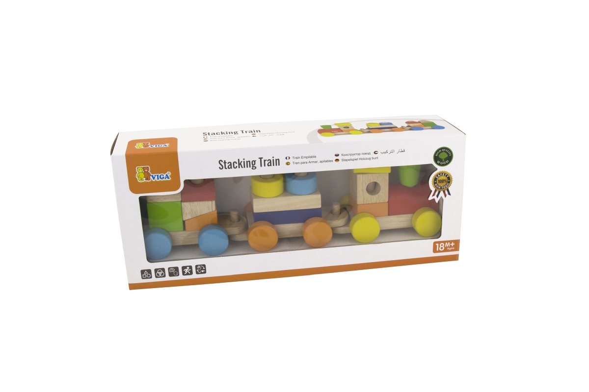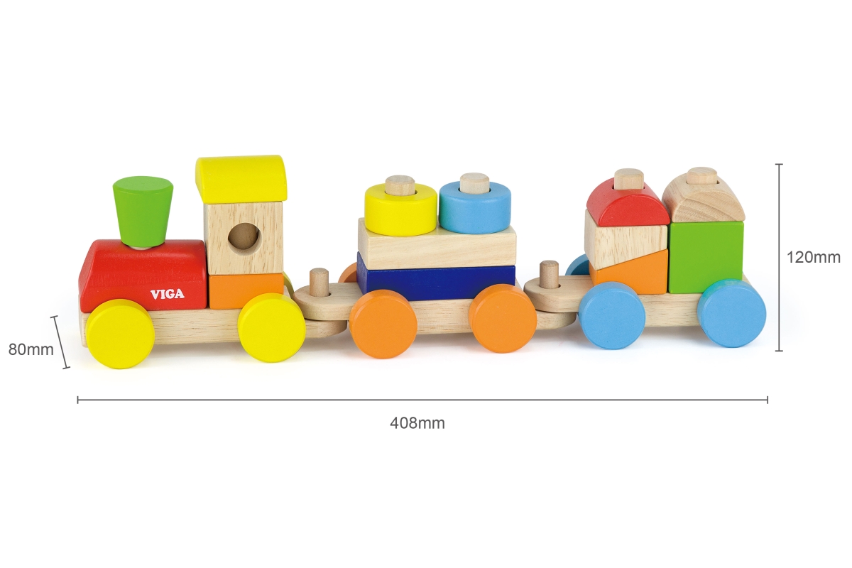 Dřevěná mašinka skládačka o rozměru cca 41 x 12 x 8 cm. Rozměry balení cca 44,5 x 19 x 9 cm. Věk 18m+..