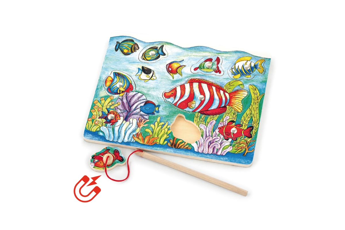Dřevěné rybaření (vkládačka) na magnet. Rozměry balení cca 30 x 22,5 x 1 cm. Věk 18m+..