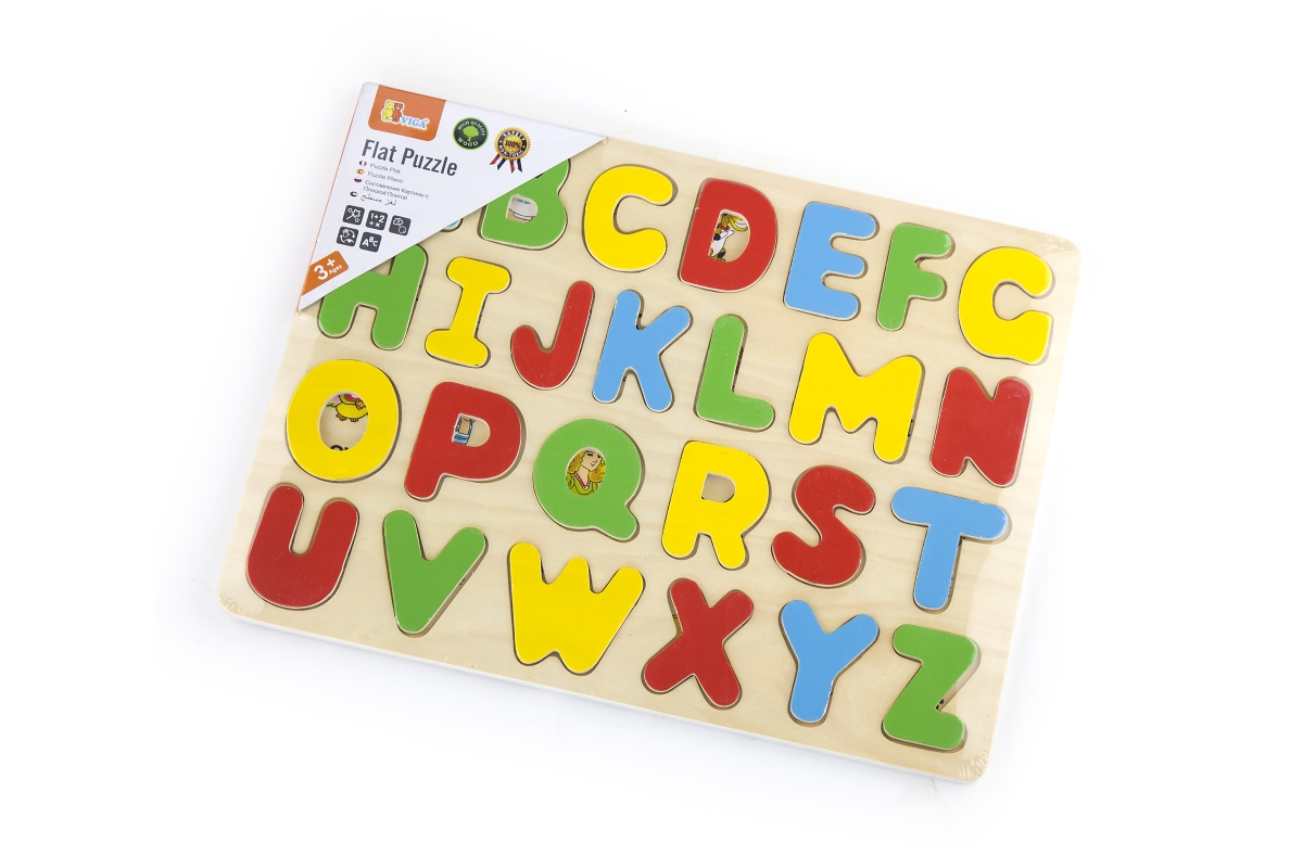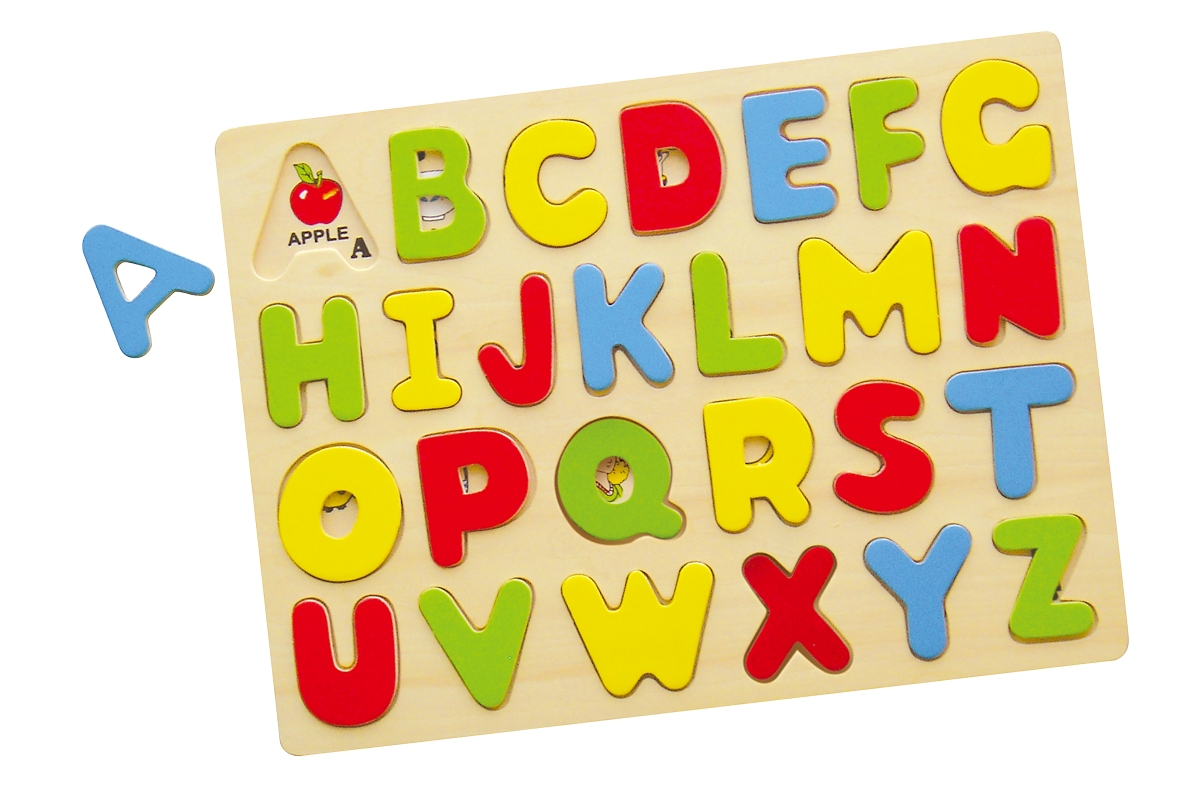 Dřevěná vkládačka písmena. Balení obsahuje 26 dílů. Rozměry cca 30 x 22,5 x 0,5 cm. Věk 3+..
