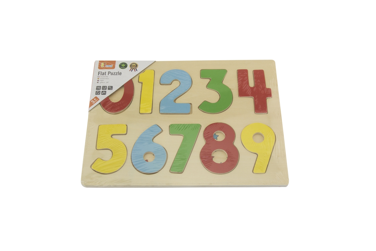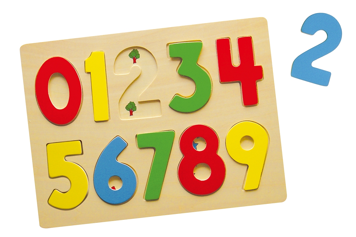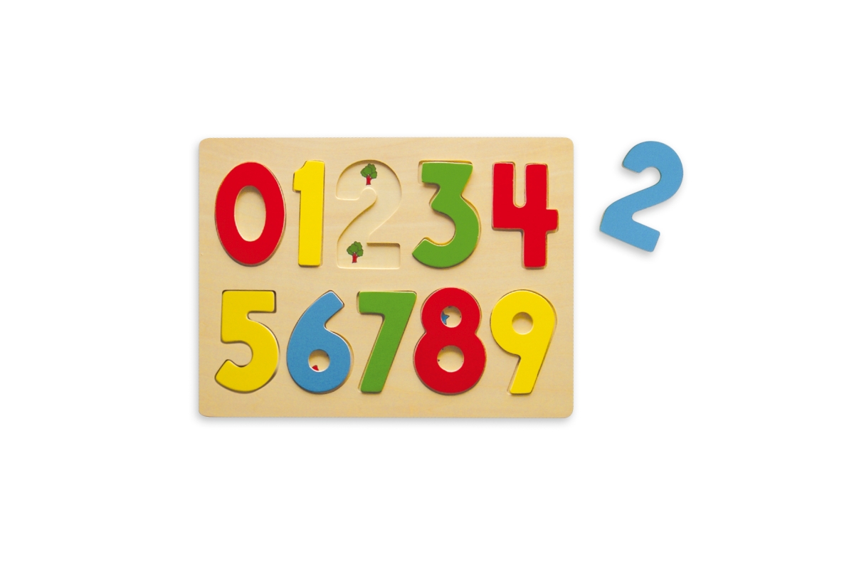 Dřevěná vkládačka čísla. Balení obsahuje 10 dílů. Rozměry cca 30 x 22,5 x 0,5 cm. Věk 3+..