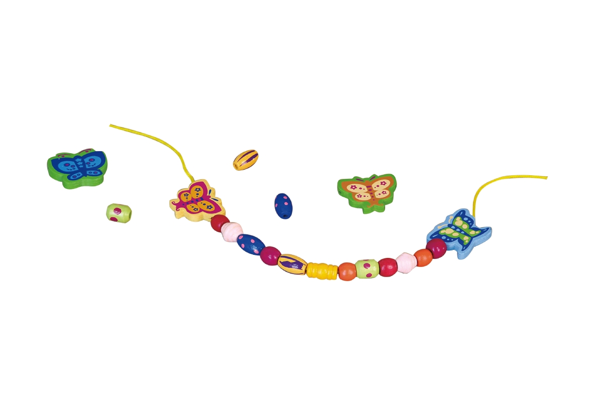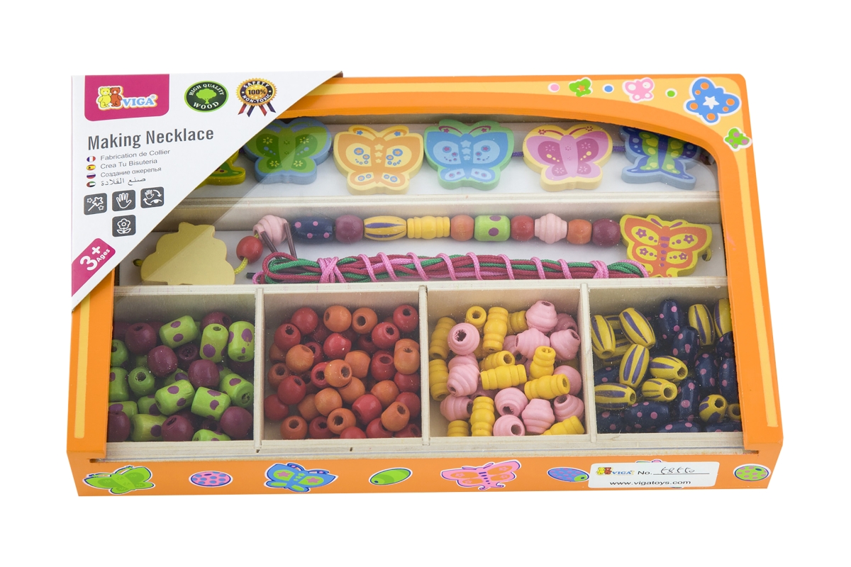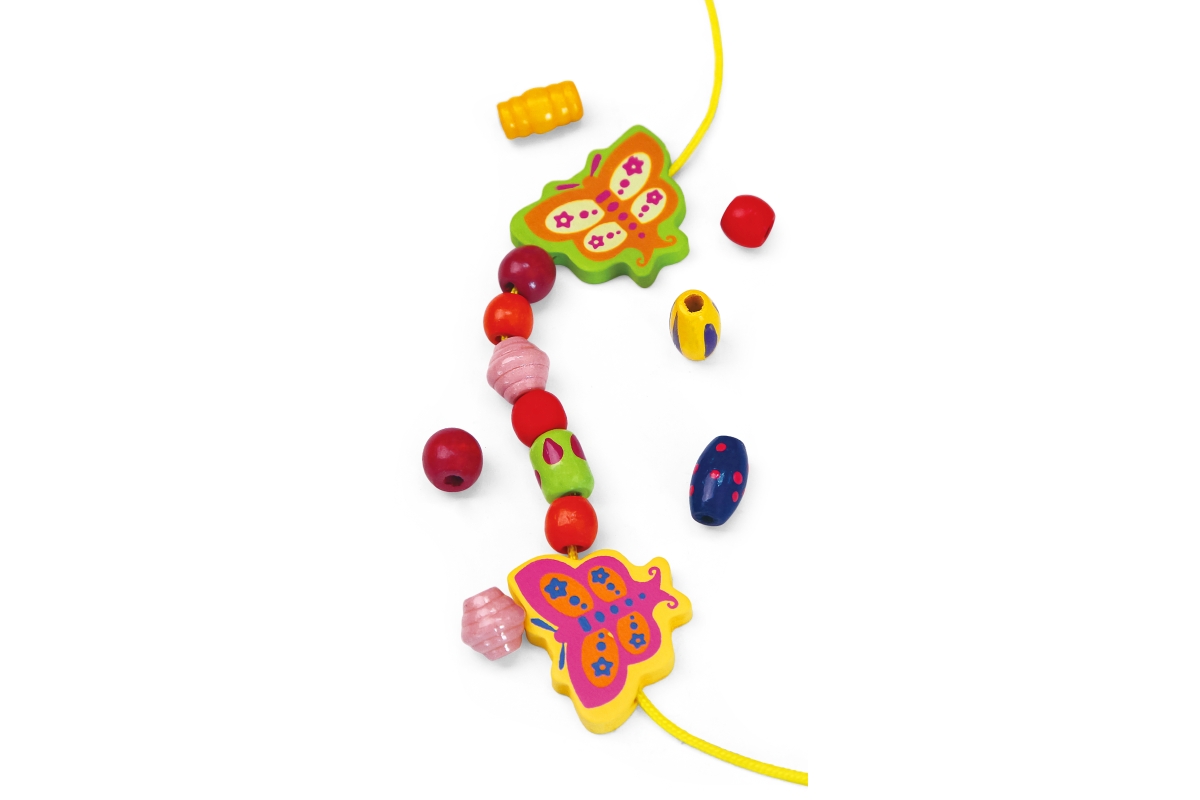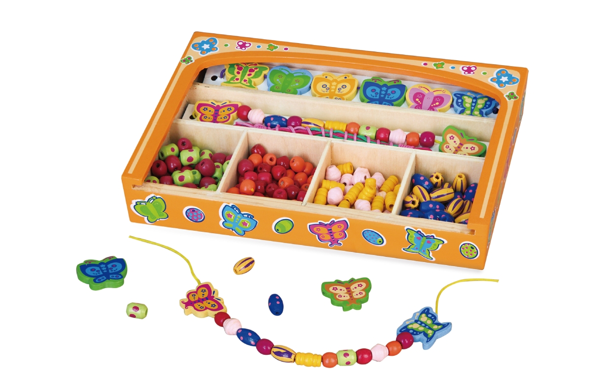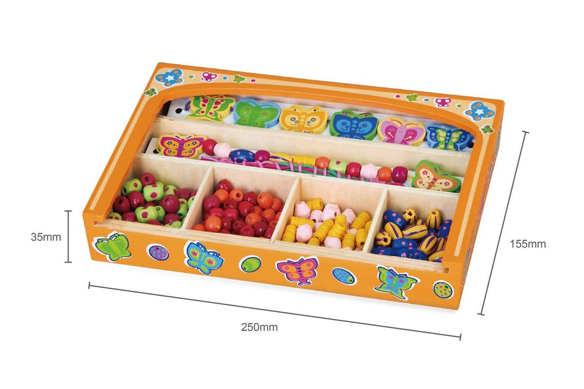 Dřevěná sada korálků různých velikostí a tvarů. Rozměry balení cca 25 x 15,5 x 3,5 cm - dřevěná krabička. Věk 3+..