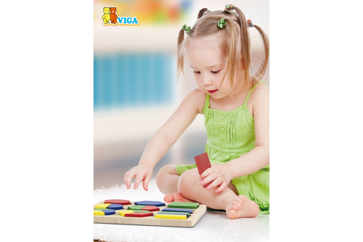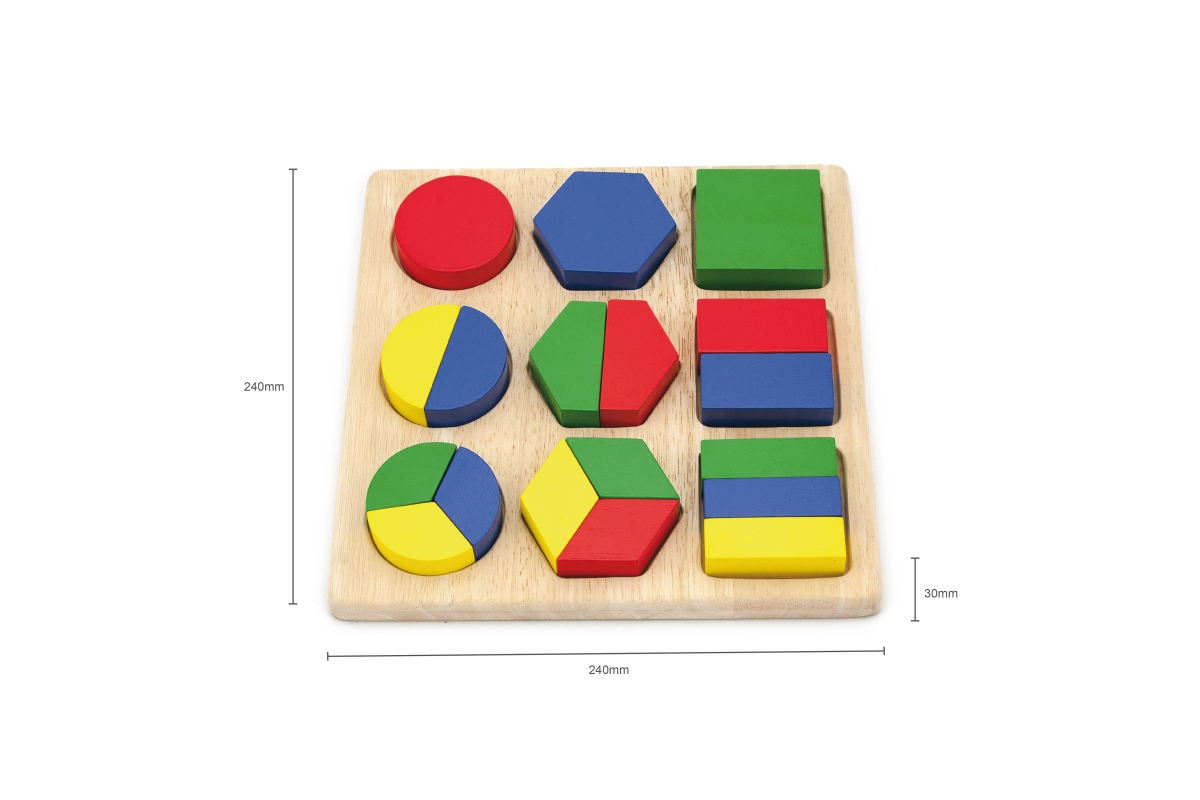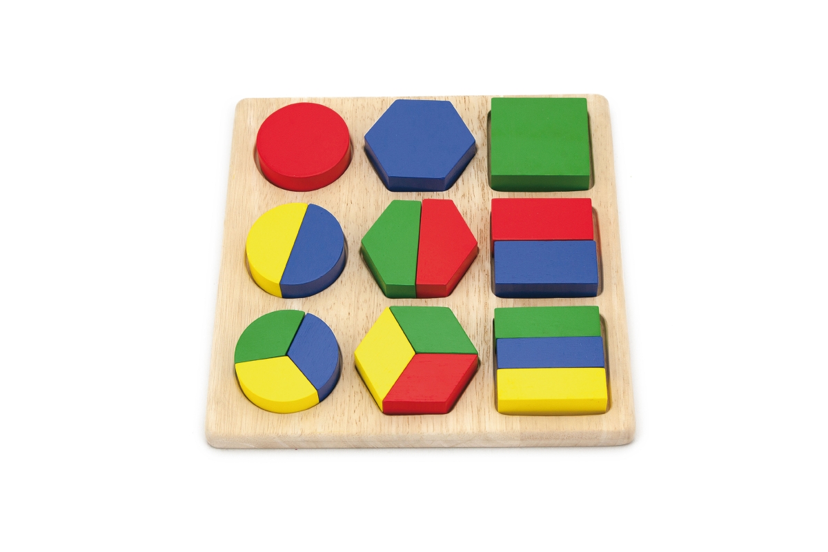 Dřevěná vkládačka barvy a tvary. Balení obsahuje 18 dílů. Rozměry cca 24,5 x 24,5 x 3 cm. Rozměry balení cca 25,5 x 25,5 x 3,7 cm. Věk 12m+..
