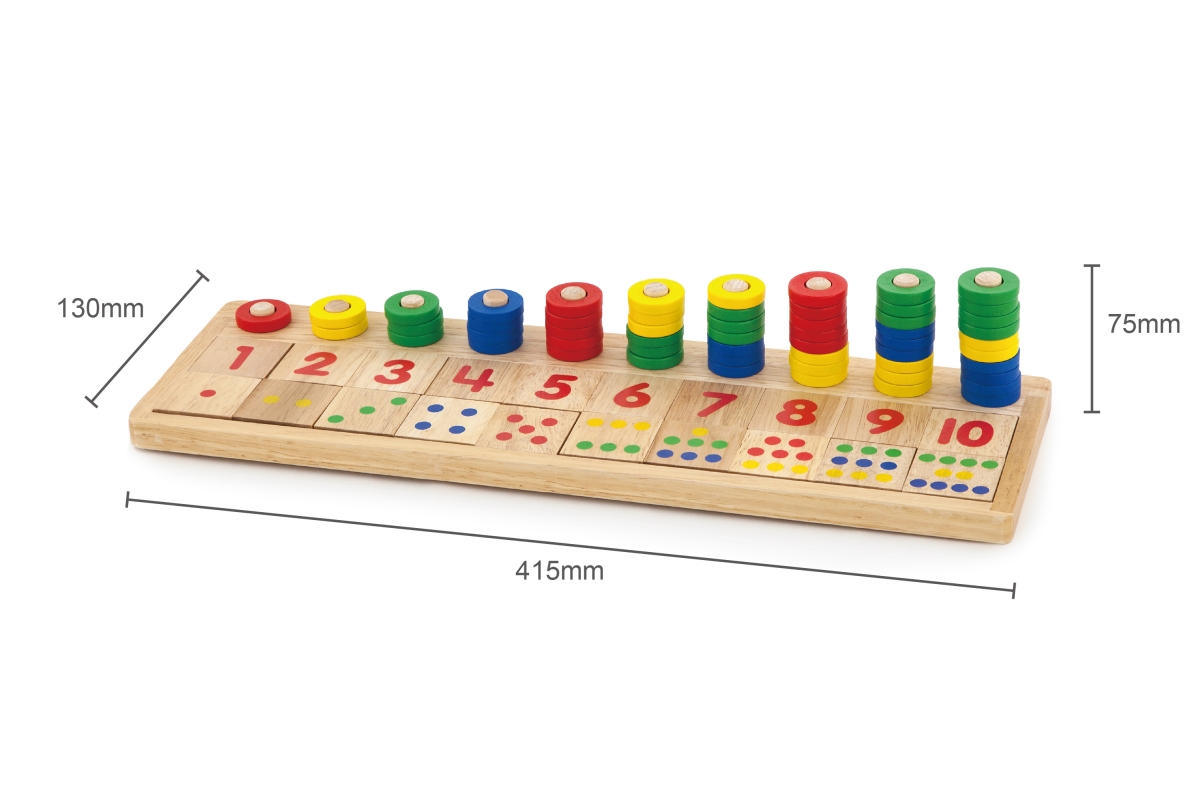 Dřevěná hra počítání. Balení obsahuje 55 dřevěných kroužků a 20 čtvercových dílů. Rozměry cca 41,5 x 13 x 7,5 cm. Rozměry balení cca 42,5 x 14 x 6 cm...