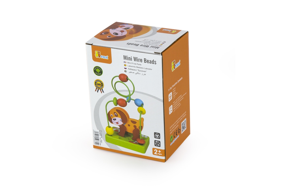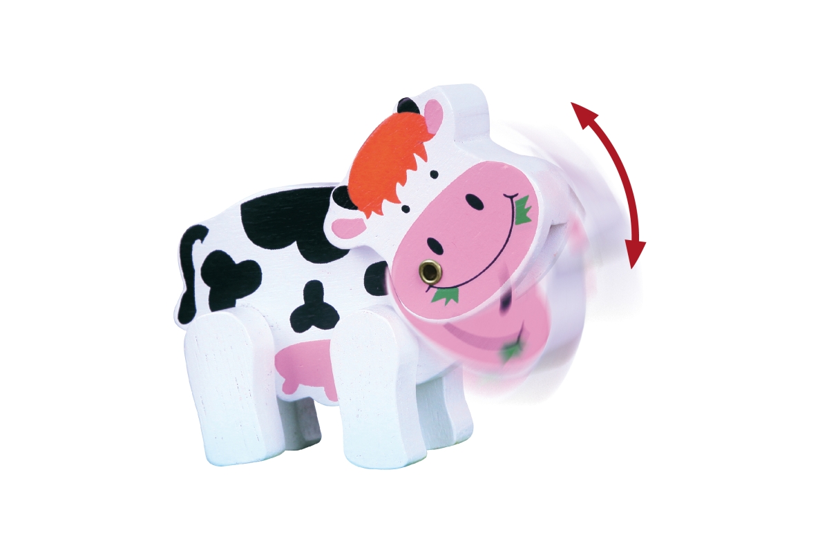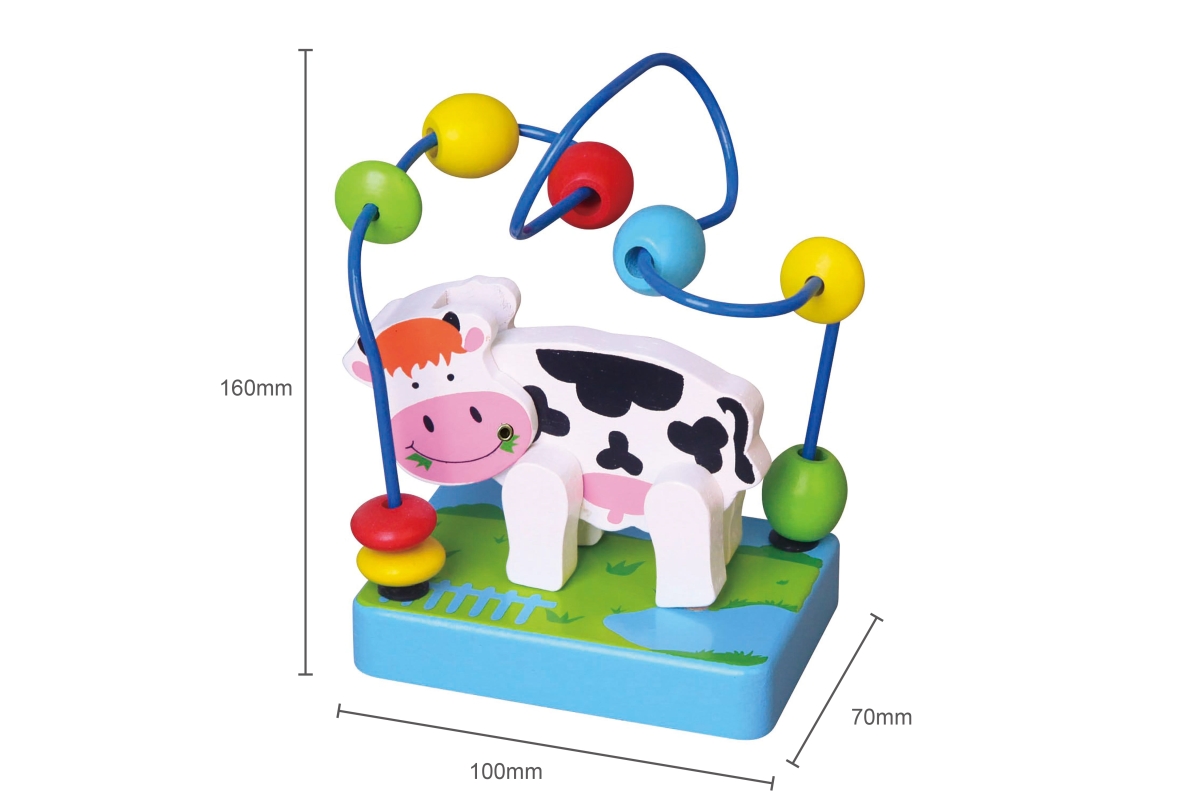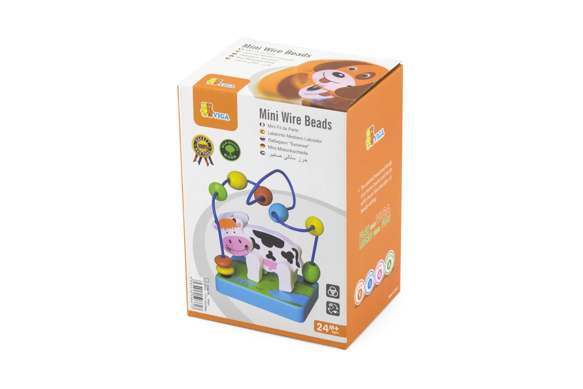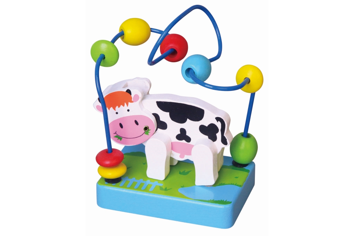 Dřevěný labyrint s kravičkou. Kravička má ohýbací hlavičku. Rozměry labyrintu cca 10 x 7 x 15 cm. Rozměry balení cca 17 x 9 x 12 cm. Věk 2+..