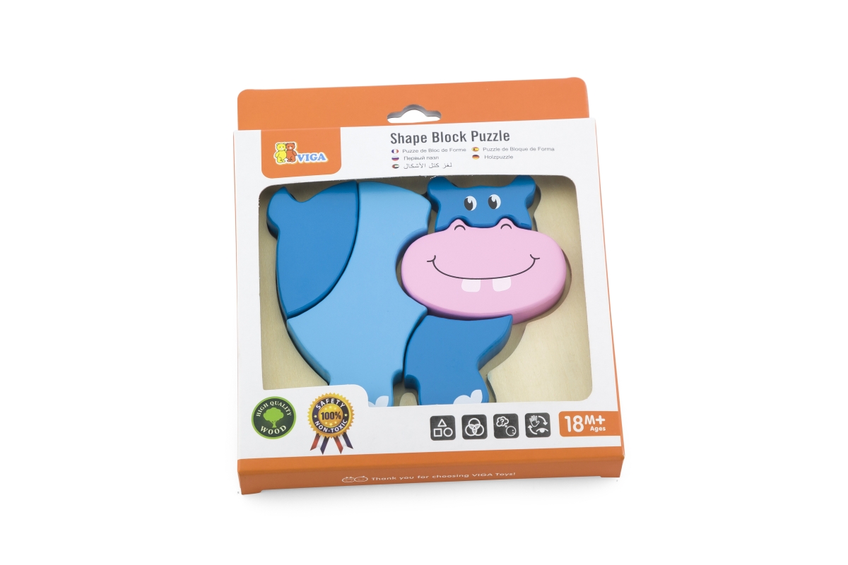 Dřevěné puzzle - vkládačka pro nejmenší s motivem hrocha. Rozměry hrocha cca 13 x 11 cm. Rozměry balení cca 15,5 x 18 x 2 cm. Věk 18m+..