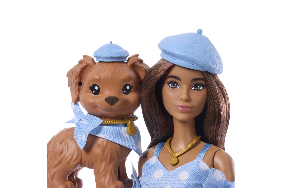 Zdvojnásobte zábavu s panenkami Barbie. Panenky Barbie jsou dodávány s roztomilým psím mazlíčkem v odpovídajícím oblečku. Díky sadě sladěných doplňků pro Barbie i jejího pejska si děti mohou dvojici vystajlovat od hlavy až k patě! Mašle, náhrdelníky a další doplňky dodají panence osobitost. Rozkošné dvojice jsou oblečeny na všechny možné příležitosti. Každý set se prodává samostatně podle dostupnosti. Panenka nemůže stát samostatně. Barvy a vzhled výrobku se mohou lišit. Věk 3+