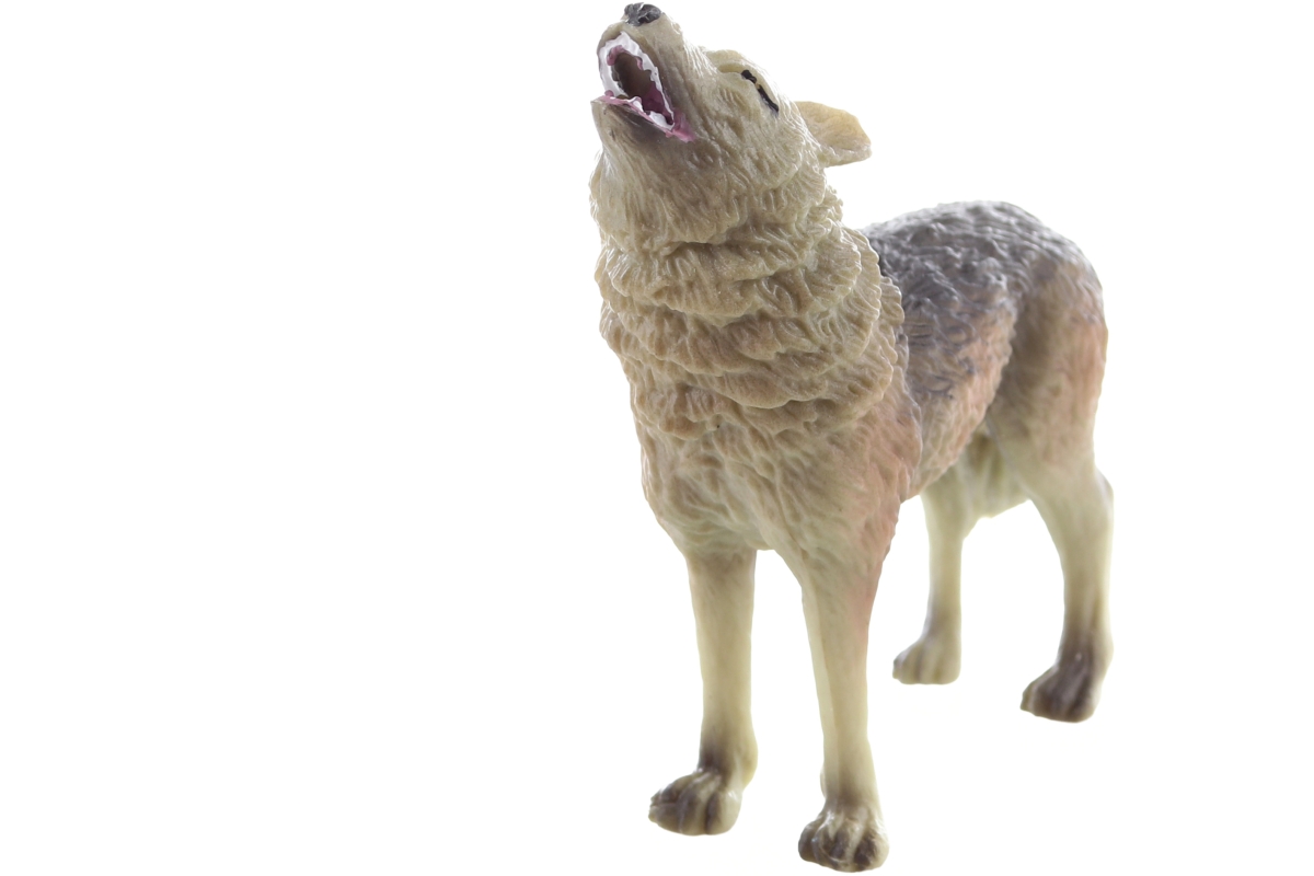 Plastový vlk o velikosti cca 9 x 7,5 x 2,5 cm. Baleno v sáčku. Věk 3+..
