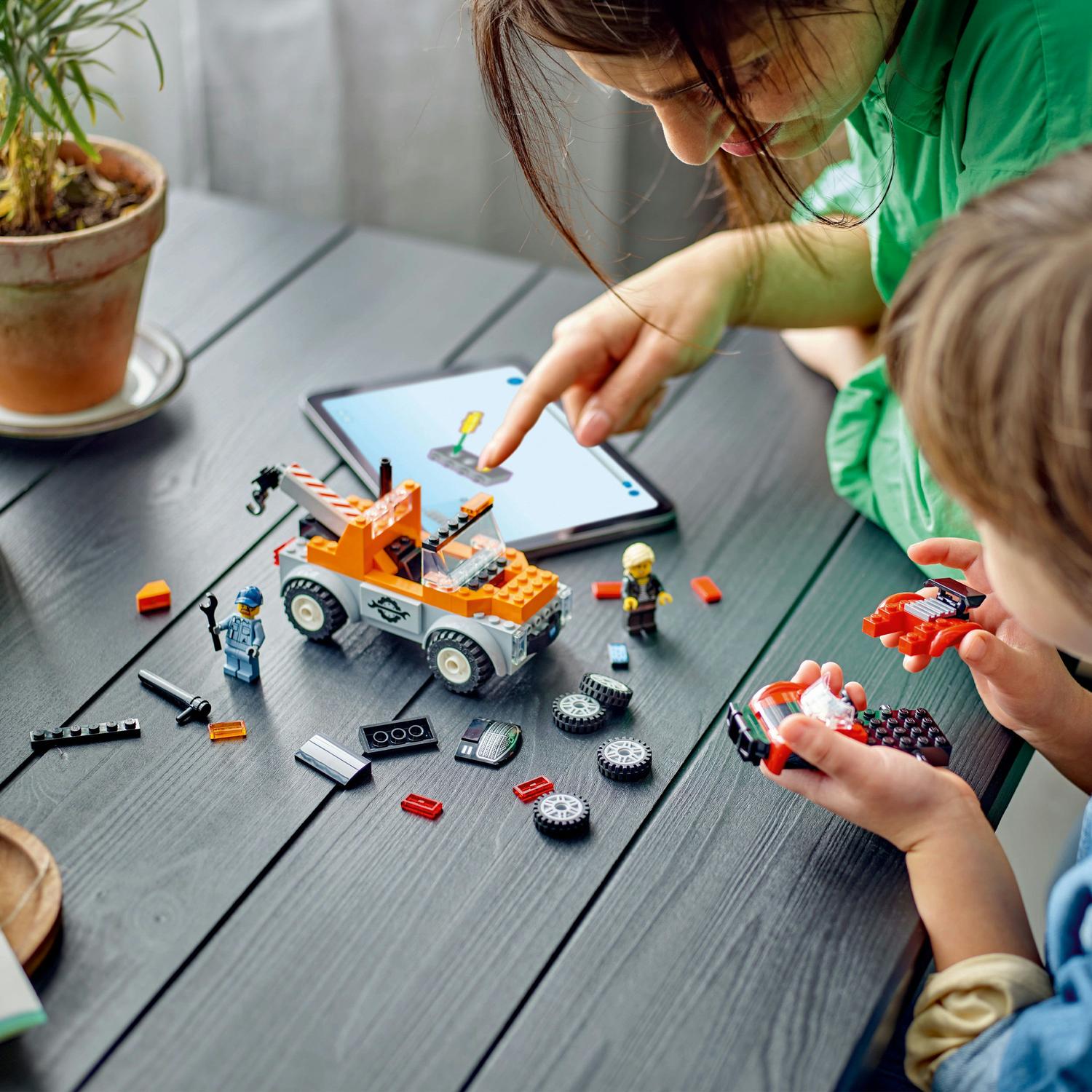 Stavebnice odtahového vozu pro děti od 4 let – Vydejte se společně se svým malým hrdinou na zábavná dobrodružství se stavebnicí LEGO® City Odtahový vůz a oprava sporťáku a vyprávějte nápadité příběhy