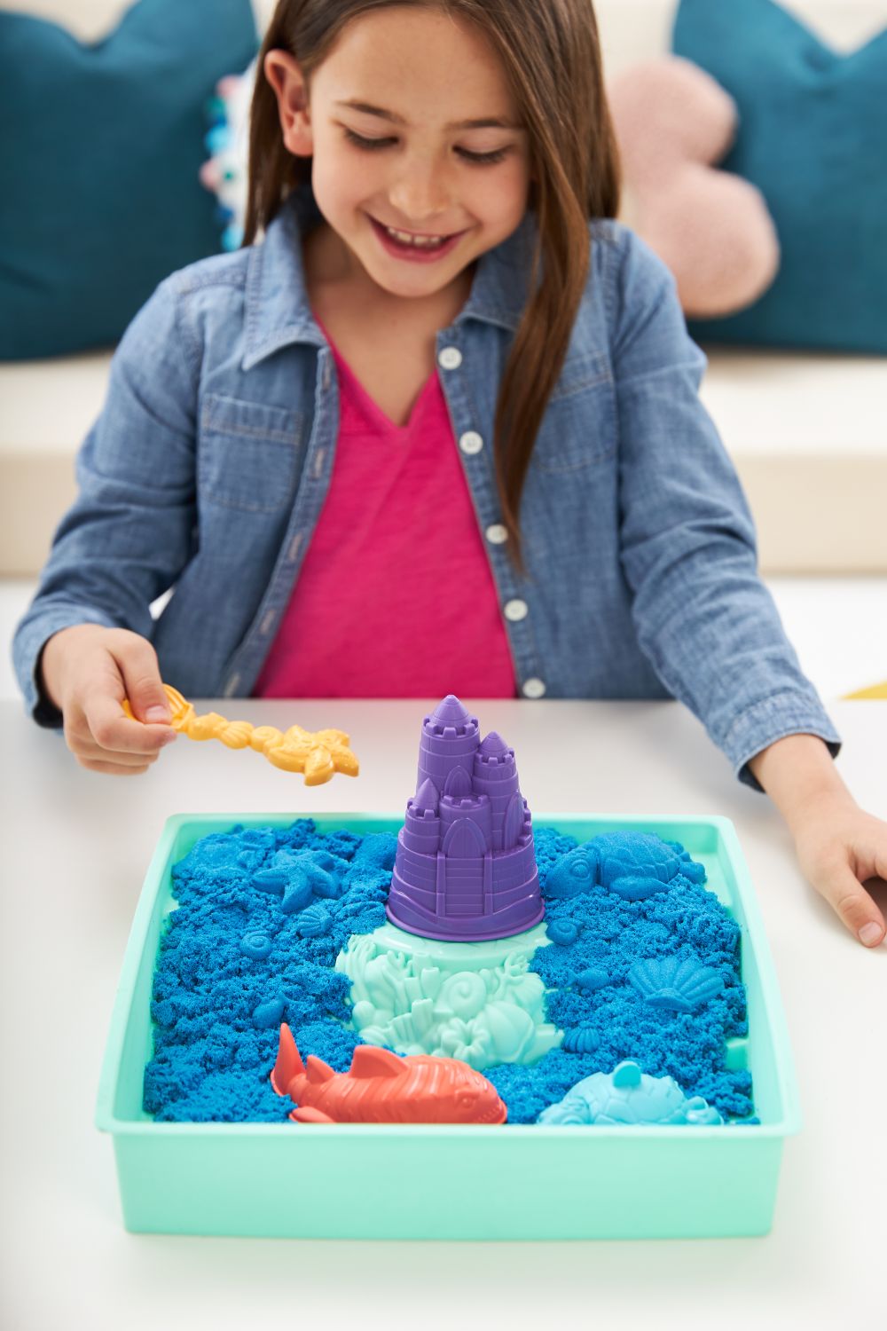 Vytvořte si vlastní dobrodružství na pískovišti se sadou kinetického písku Kinetic Sand Sandbox Set! Kinetický písek je originální kouzelný, tvarovatelný a fascinující smyslový písek. Protéká mezi prsty a nikdy nevyschne, takže si s ním můžete hrát znovu a znovu. Se sadou Sandbox si můžete hrát na pískovišti po celý rok! Jedinečné složení kinetického písku umožňuje ho snadno tvarovat, mačkat a tvořit z něj cokoli, co si jen dokážete představit. Ze 450 gramů modrého kinetického písku můžete stavět hrady, žraloky a želvy a ke kopání, nabírání, sypání a tvarování použít přiloženou lopatku. Součástí této sady kinetického písku je i dvoupatrový zásobník na písek ideální pro hru v interiéru. Mačkejte ho, krájejte, nabírejte, tvarujte - kreativní možnosti jsou se sadou Sandbox nekonečné! Vytvářejte z kinetického písku všechno možné a nechte si ho protékat mezi prsty – je to tak příjemný pocit, že nebudete moct přestat! Kinetický písek je vyroben z přírodního písku. Tato hrací sada je nejen skvělou alternativou k výtvarné modelíně, ale také úžasným přídavkem doplňkem k vašemu stolu s výtvarnými potřebami, dětskému tvoření a Montessori hračkám! Perfektní cool hračky pro holky i kluky, které podporují samostatnost a představivost. Pokud si s kinetickým pískem chcete užít ještě více zábavy, doplňte do své hrací sady velké sáčky s barevným pískem (prodávají se samostatně).