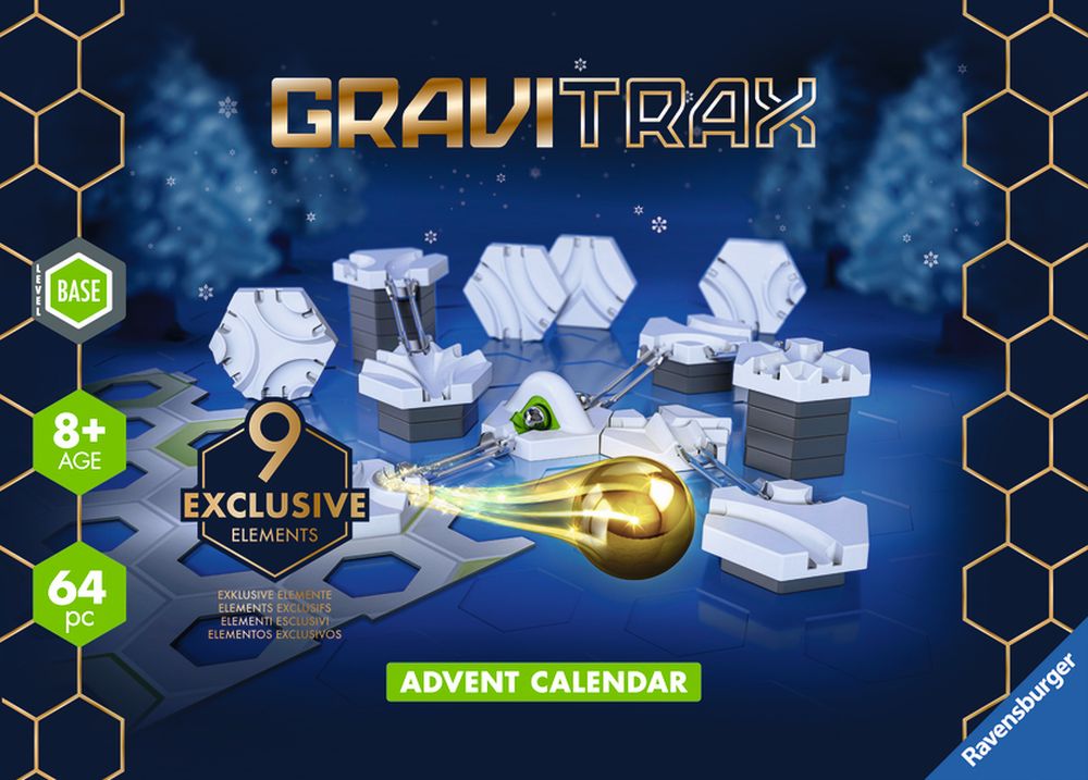 Připravte se na Vánoce s akční zábavou v „GraviTrax Adventním kalendáři“ a rozjeďte kuličky naplno! Za každými z 24 dvířek adventního kalendáře se skrývá překvapení – od stavebních dílků po akční prvky a vánoční kuličky. Začátečníci i fanoušci GraviTraxu se mohou těšit na 8 speciálních a exkluzivních nových dílků. Všech 24 prvků lze používat i bez startovní sady.