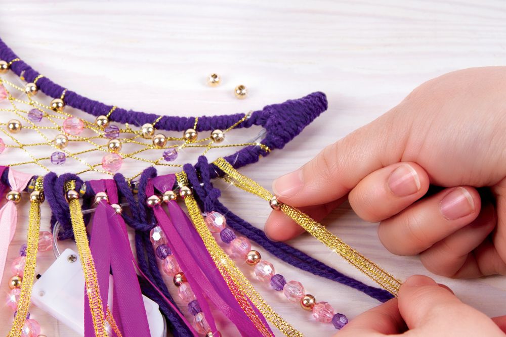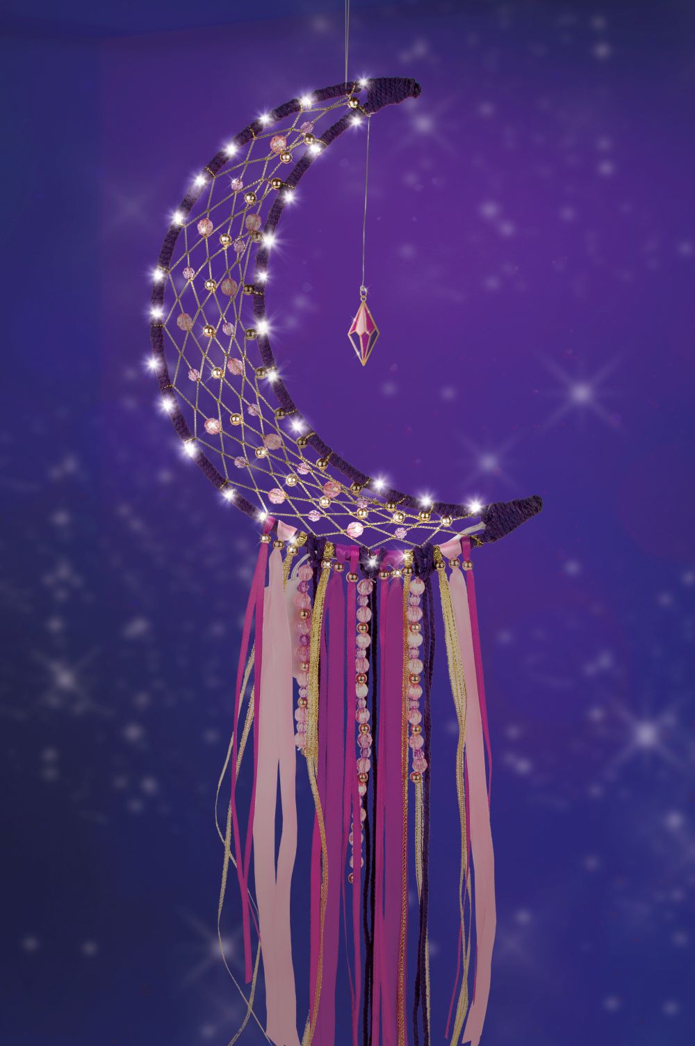 Balení obsahuje konstrukci ve tvaru měsíce, barevné korálky, stříbrnou šňůru, barevné provázky, peříčka na dekoraci, světýlka a instrukce. Vhodné od 8..
