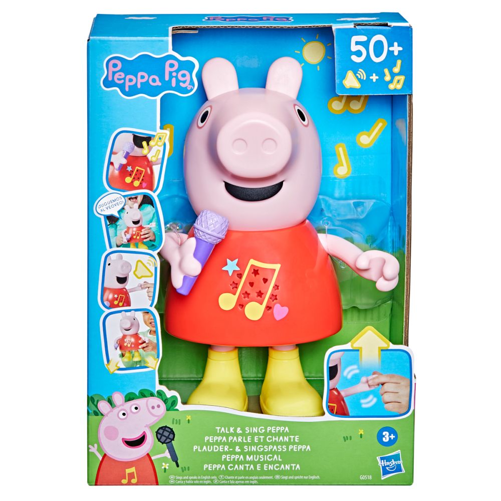 Mluvící a zpívající prasátko Peppa Pig. Díky více než 50 frázím, písním a zvukovým efektům bude hra s mluvícím a zpívajícím prasátkem Peppa tak zábavn..