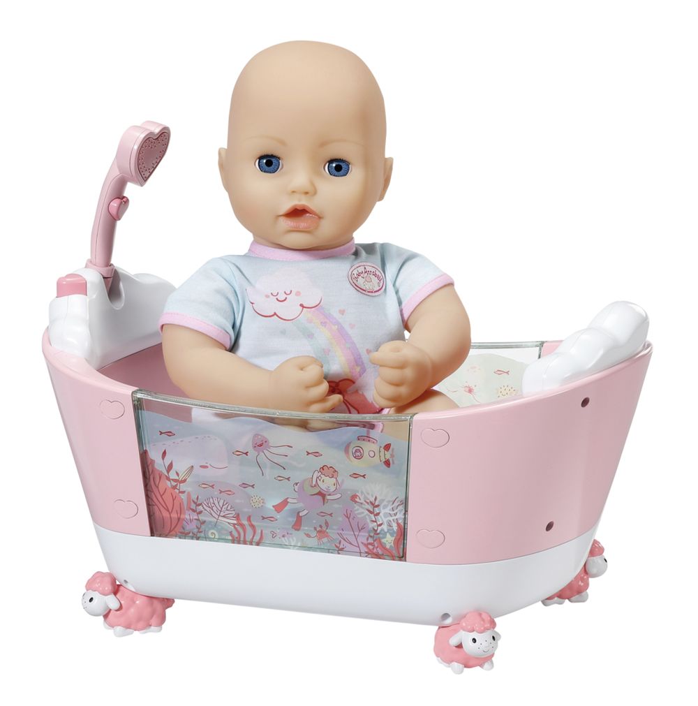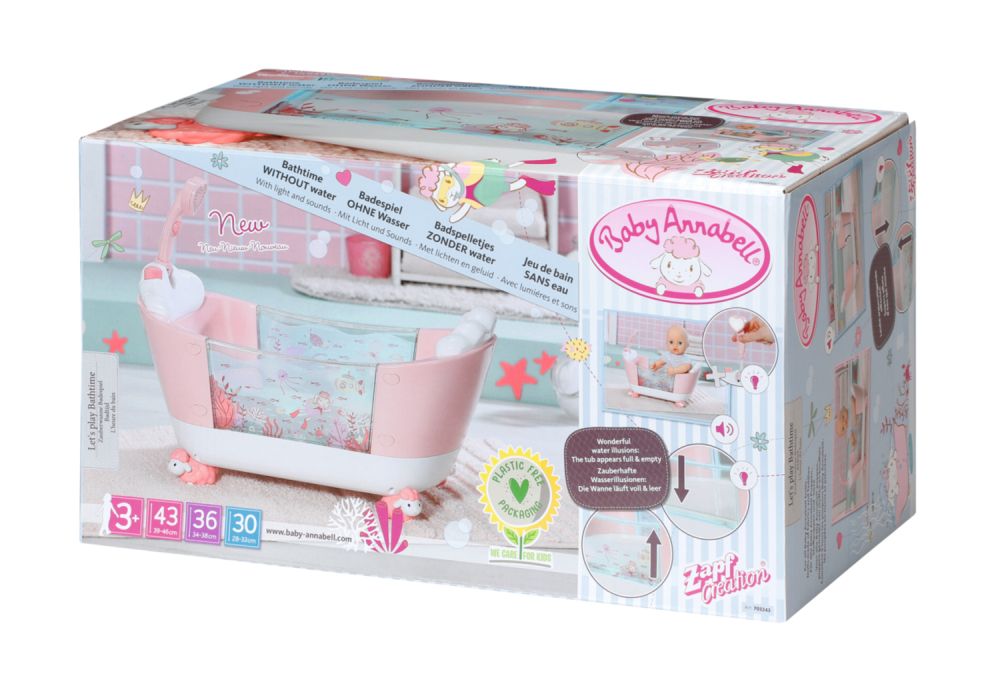 „Hurá, jde se do vany!“ Baby Annabell se pohodlně uvelebí ve své kouzelné vaně. A proč kouzelné? Protože se v ní Baby Annabell může koupat úplně bez v..