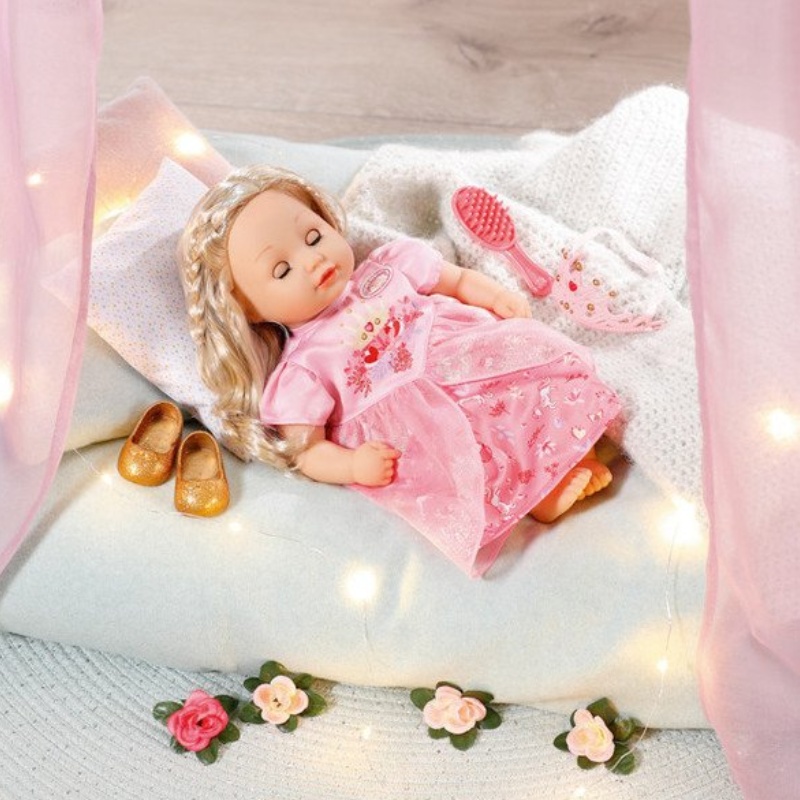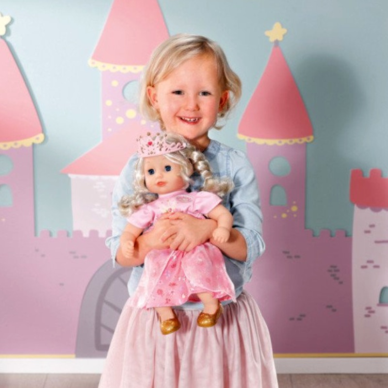 Baby Annabell Little Sweet Princezna je panenka velikosti 36 cm v šatičkách a botičkách, s diadémem a kartáčem na vlasy.