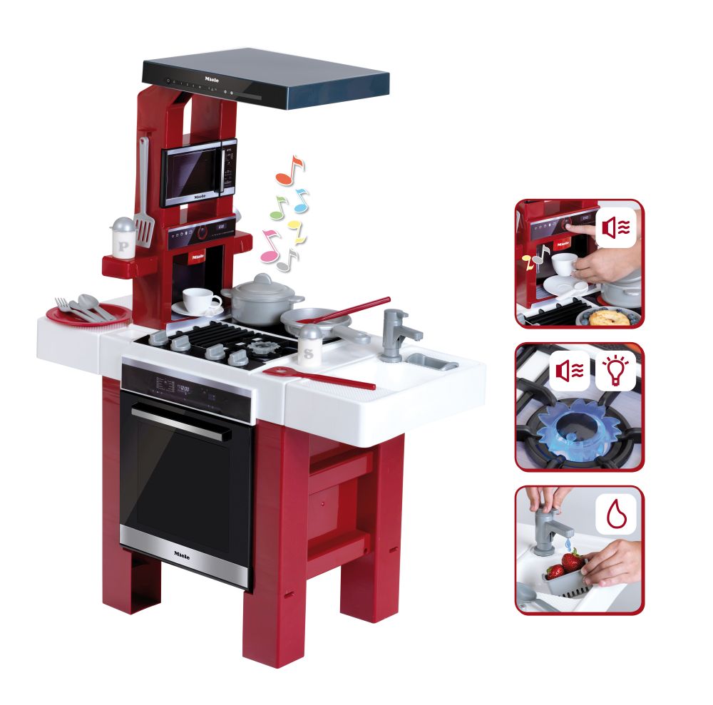 Kuchyňka Miele FRESH je oboustranná kuchyňka, která obsahuje kávovar na espresso se zvukem, vařič se zvukem a blikajícím světlem, dřez s funkcí vody a další různé příslušenství včetně talířů, nádobí a pánví. Výška kuchyňky je zhruba 95 cm. Provoz je na baterie - 4 ks 1,5 V R03, typ AAA, které nejsou součástí balení. Vhodná pro děti od 3 let.