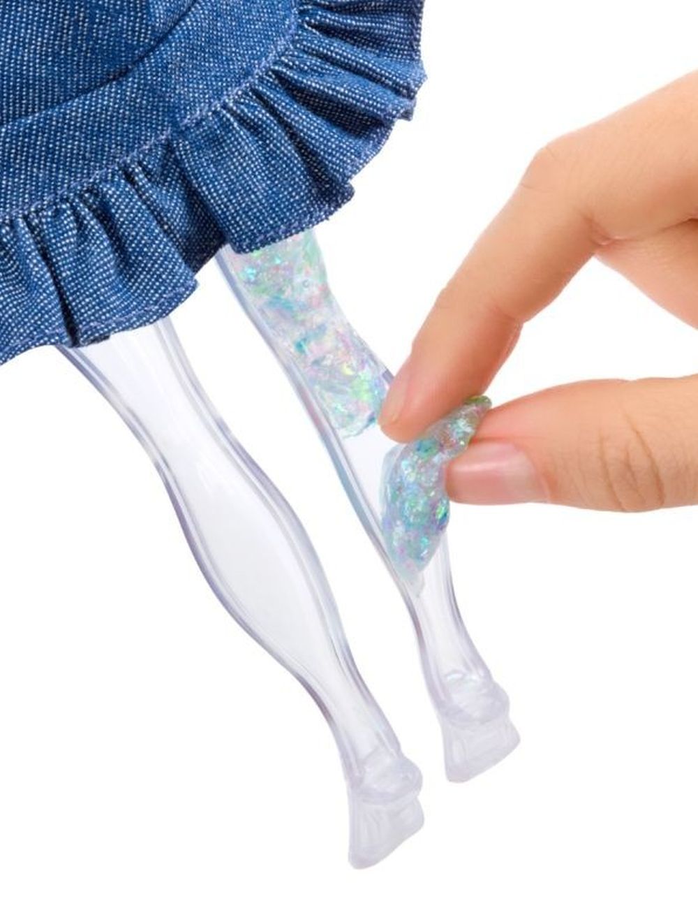Rainbow High panenky jsou ještě kouzelnější! Společně se svými malými sestřičkami objevují nový svět, nové outfity a zcela nový způsob hraní. Každá panenka přichází s průhledným slizem a čtyřmi druhy třpytek. Třpytky přidej do slizu a uprav ho podle své fantazie. Poté sliz dej do průhledných nohou panenky a sleduj, jak se její nohy promění! Je to tak snadné! Sundej zadní část nohou, přidej sliz, zacvakni nohy zpět a můžeš si hned hrát! A to nejlepší? Můžeš to dělat znovu a znovu. Nebo můžeš třpytky a sliz kombinovat mezi různými panenkami.